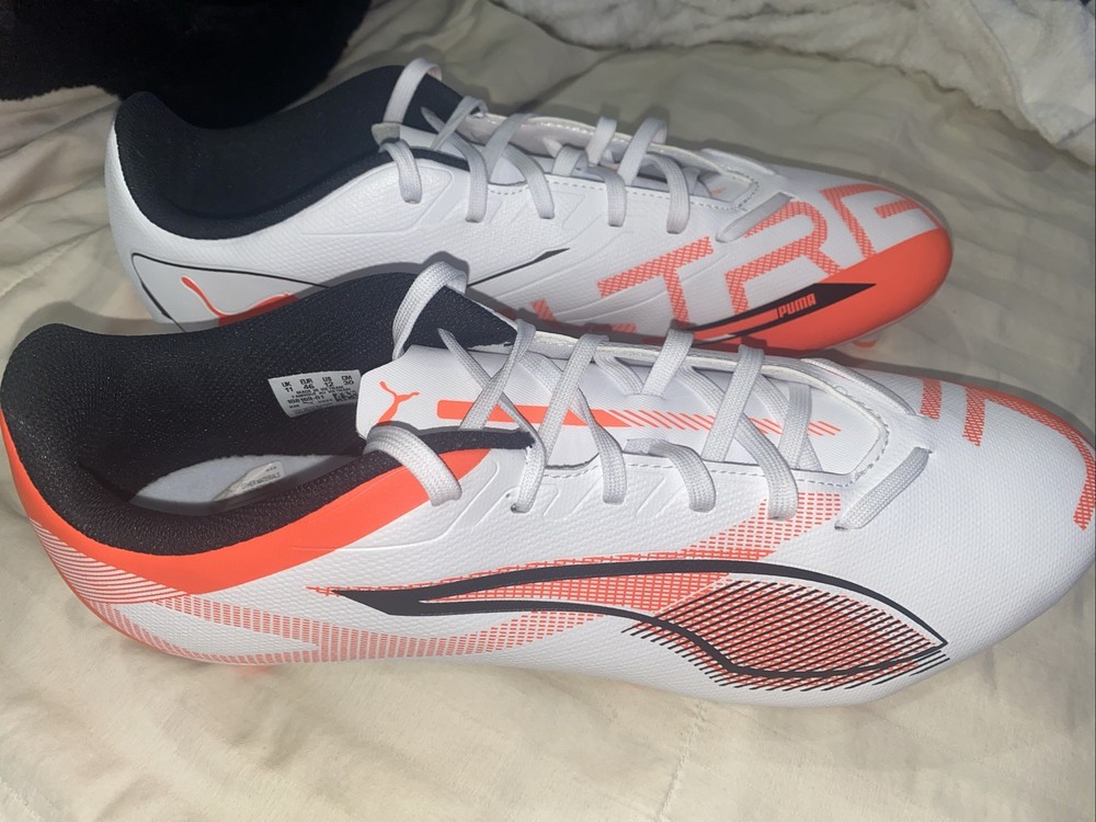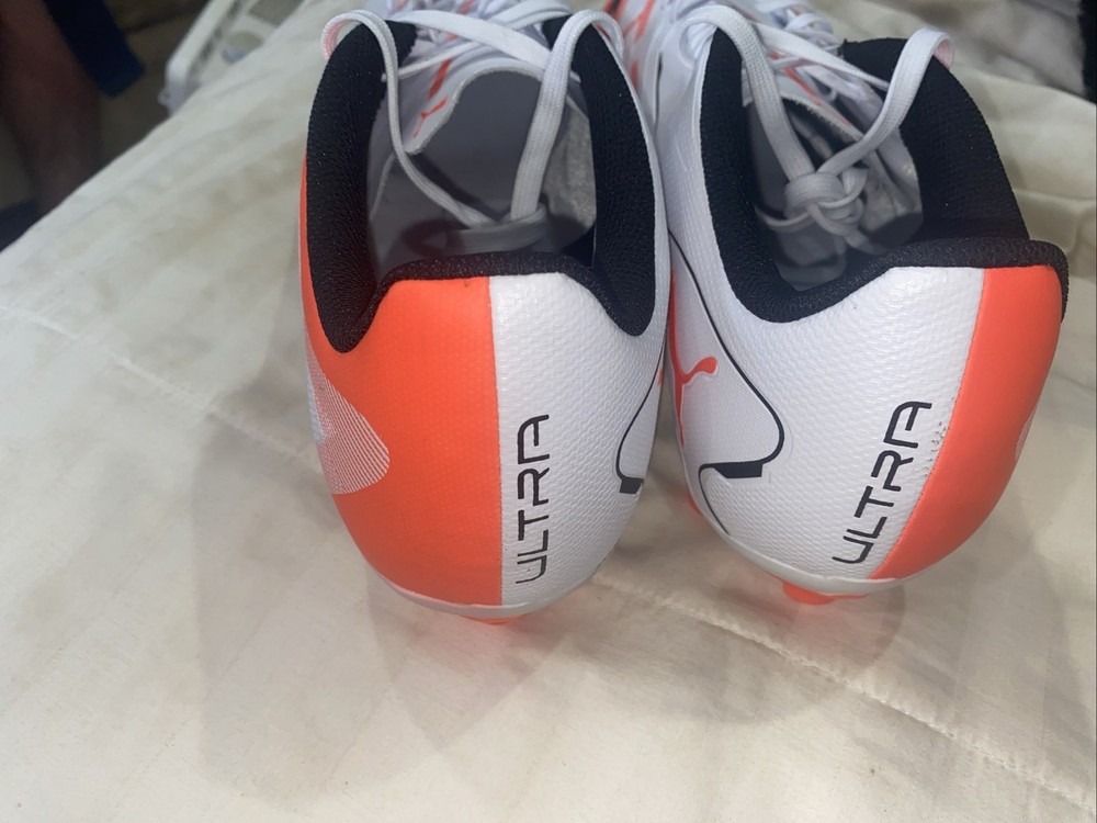 The Puma Ultra 5 Play FG/AG soccer cleats in size 11 Men’s are brand new and feature a sleek white design. These cleats are specifically designed for soccer players seeking high performance on the field. The Puma Ultra Play FG/AG 107423-01 model offers a standard width and is part of the Puma Ultra Play FG/AG product line, known for its quality and durability. With the iconic PUMA brand and focus on soccer as the main sport, these cleats are a must-have for any dedicated player looking to elevate their game.