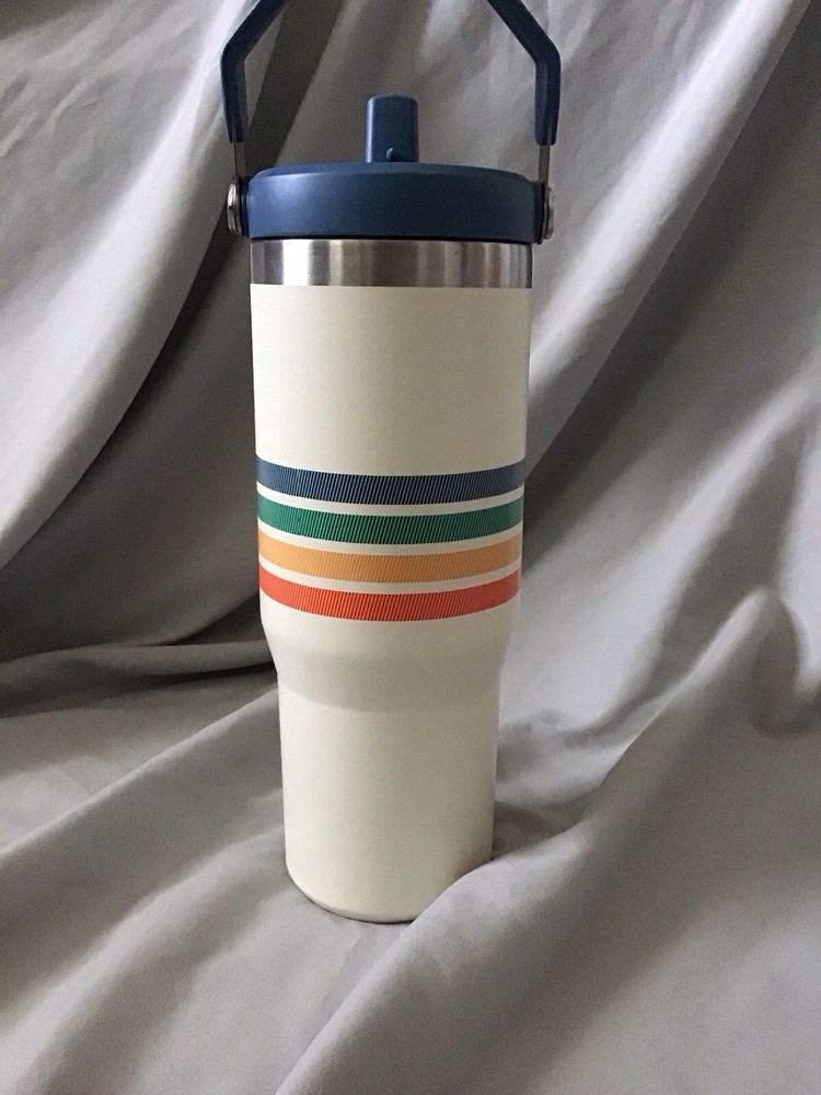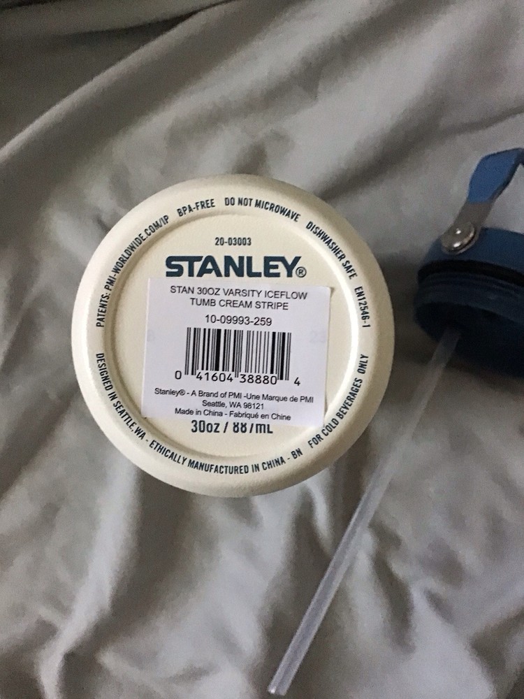 This is a brand new/unused 30 ounce Stanley Varsity Iceflow Tumbler, cream in color with stripes. The tumbler is branded with Carrabba’s Italian Grill logo and is a rare item.