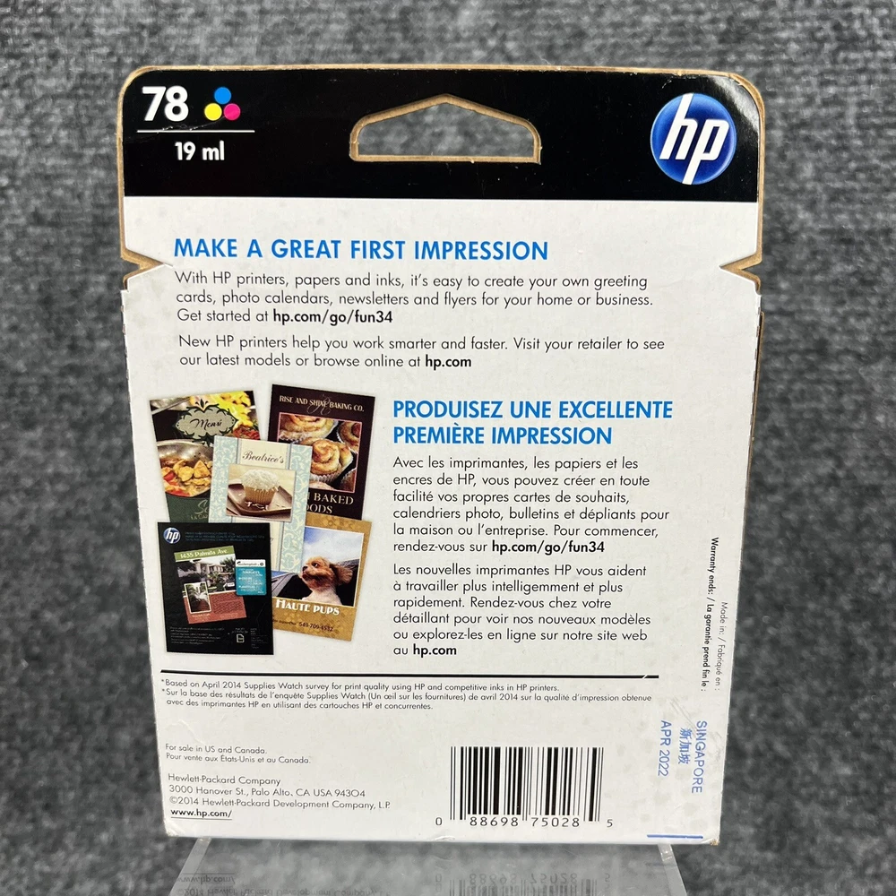 Brand New, Sealed Genuine HP 78 Ink Cartridge Tri-color C6578DN Expired April 2022. Please note that since the ink cartridge is expired there is no warranty and the cartridge should work just fine but since it is past its expiration date I cannot guarantee that it will work which is why it is discounted! Also, depending on your printer some may reject the cartridge because it’s expired - most do not care but just be aware. Please refer to the pictures for further. The ink cartridge will be shipped to you in a plastic bag (for protection from the potential elements) bubble wrapped inside of a poly bag as that’s the cheapest way to get it to you.