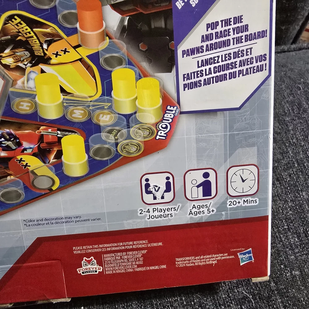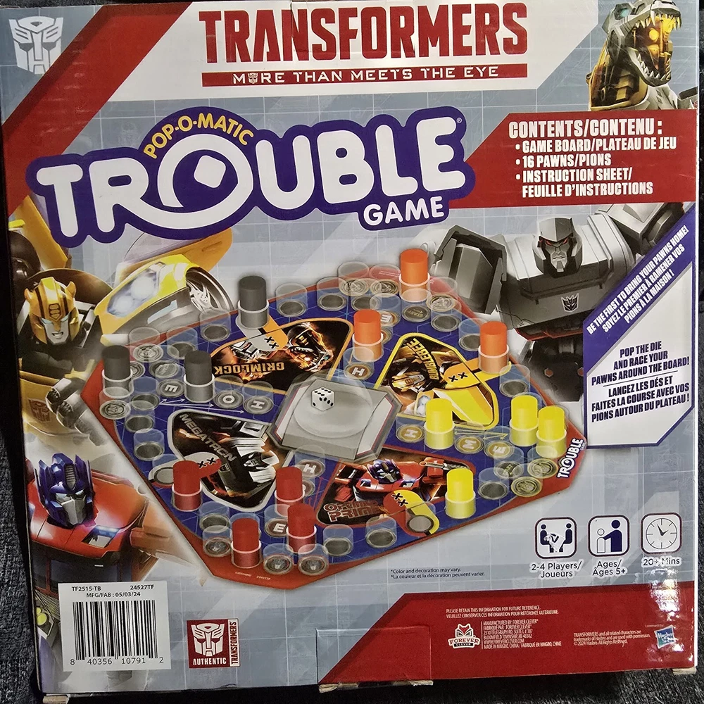 Game Title:TroubleMin. Number of Players:2 playersgtin13:840356107912Year:2024Game Type:Board GameType:Game BoardTheme:TransformersUPC:840356107912Age Level:4-7, 8-11 Years, 12-16 Years, 17 Years & UpBrand:Hasbro