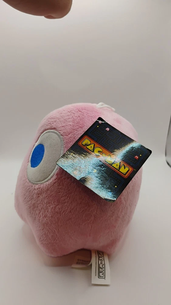 Delight in the charm of this Bandai plush, a cuddly companion inspired by the iconic Ms. Pac-Man character. This 7-inch pink ghost, named PINKY, brings a touch of whimsy and nostalgia to any collection. Crafted with a soft, plush material, it's perfect for snuggles or display. The playful design captures the essence of the beloved character family, making it an excellent gift for fans or a whimsical addition to your own assortment of stuffed animals. With its vibrant hue and endearing expression, PINKY is ready to haunt your shelves with a friendly smile.
