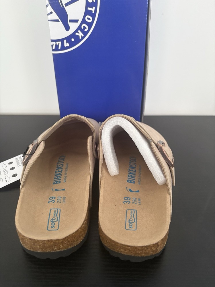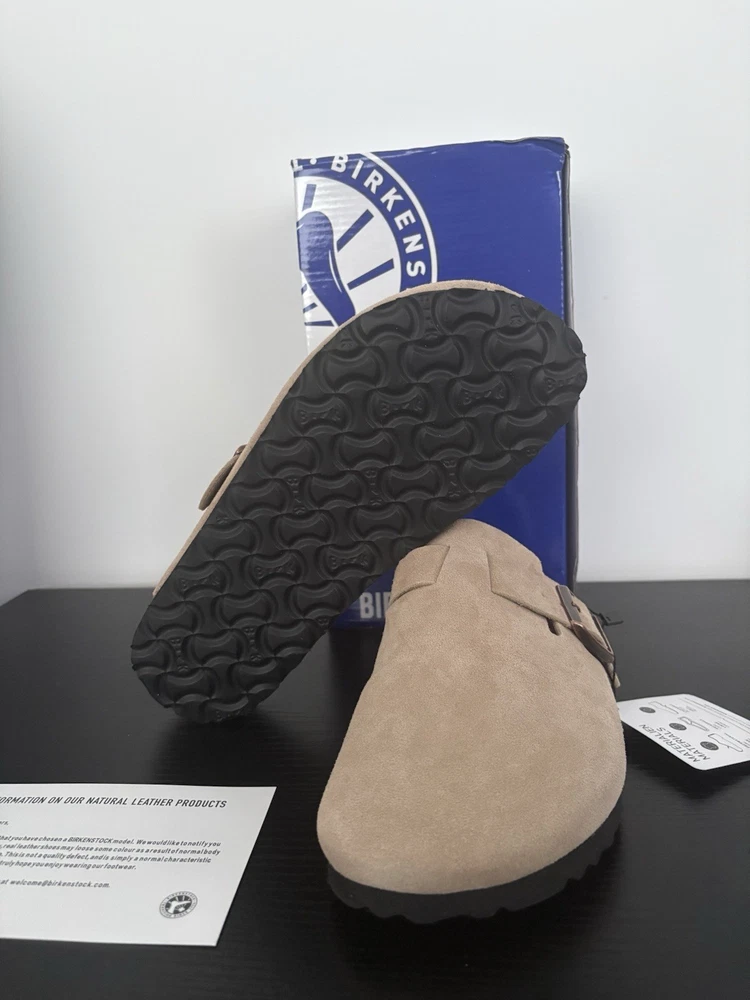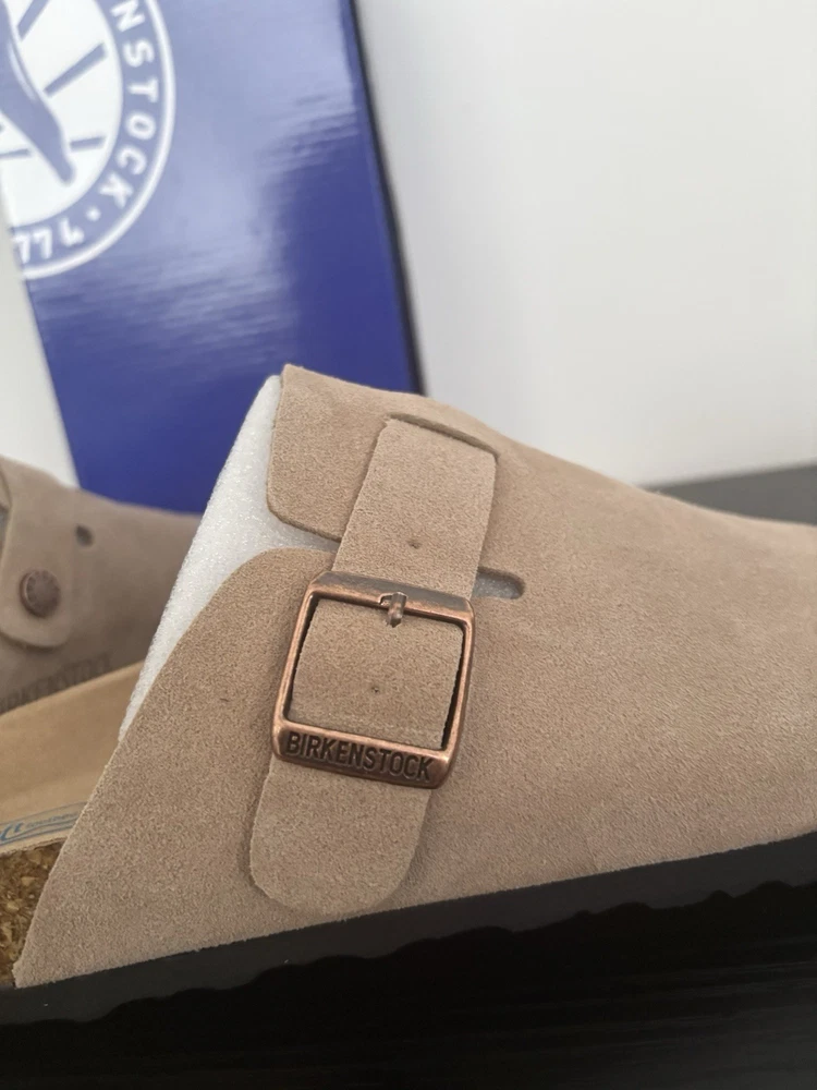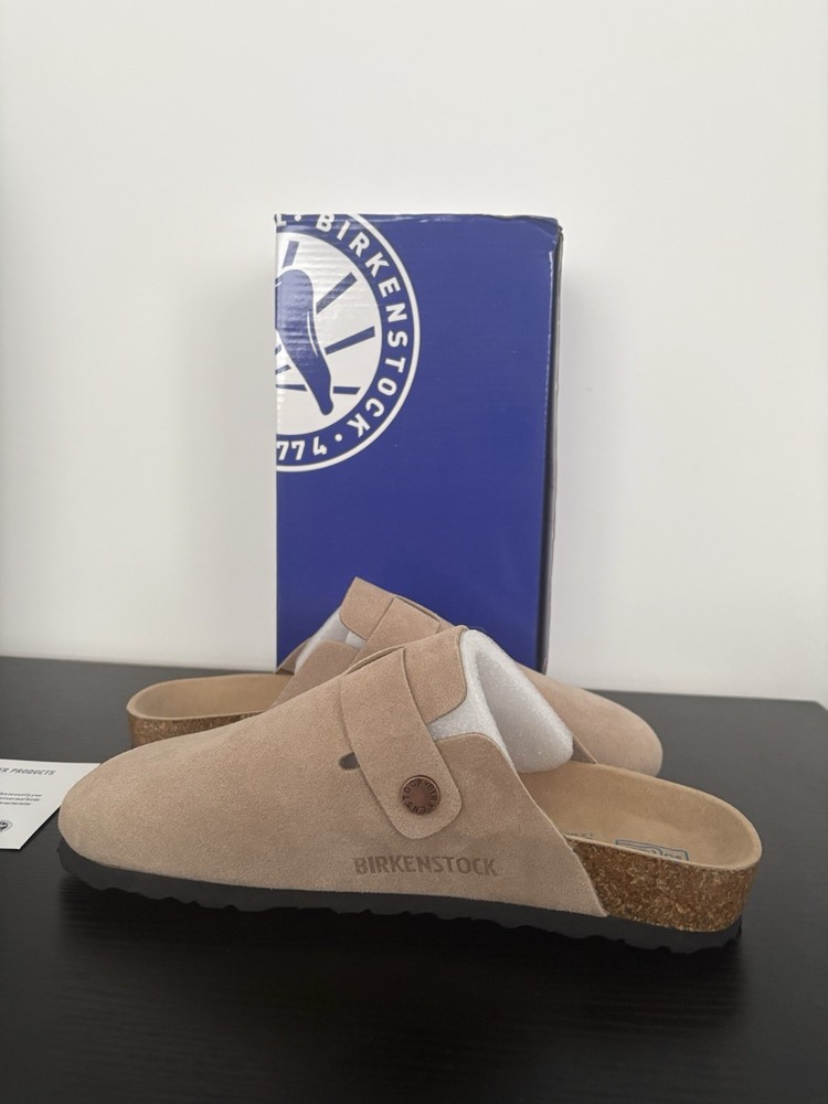 Same day shipping Perfect condition Message for questions These brand new women's Birkenstock Boston clogs in grey are a stylish and comfortable choice for casual occasions during the summer months. Made in Germany with high-quality suede materials, these slip-on sandals feature a flat heel and standard shoe width for all-day wear. The classic design and excellent craftsmanship make them a versatile addition to any wardrobe. Perfect for women looking for a quality Birkenstock product in a timeless grey colour.