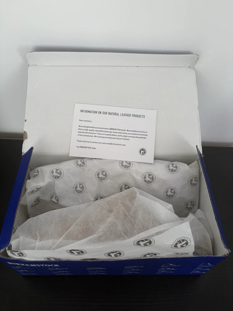 Posted in great time and packaged well. Perfect Birkenstocks, totally delighted. Great bargain, many thanks x
