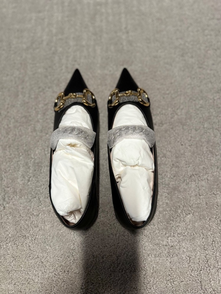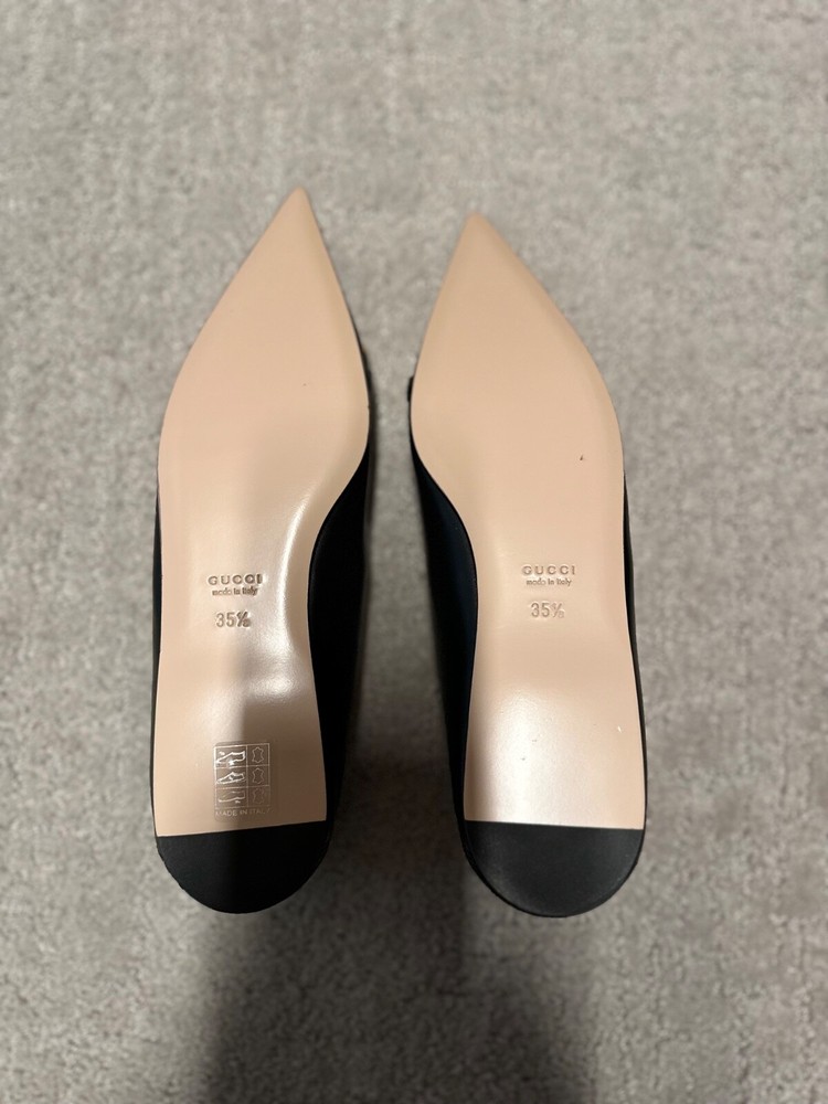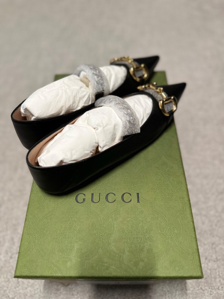 EU Shoe Size: 35.5 Insole Material: Leather Toe Shape: Pointed Toe Upper Material: Leather Closure: Slip On Outsole Material: Leather Style: flat US Shoe Size: 5.5 Type: Heel Color: Black Department: Women Brand: Gucci