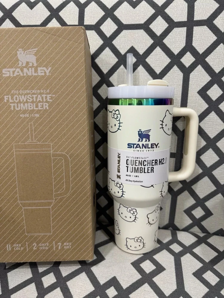 The product is a brand new Stanley quencher tumbler cup with a capacity of 40oz. It is designed in brown color and belongs to the category of Vacuum Flasks & Mugs, Kitchen Storage & Organization, and Home & Garden. The Stanley brand is known for its durable and high-quality products, making this tumbler cup a reliable choice for keeping drinks hot or cold while on the go or at home.