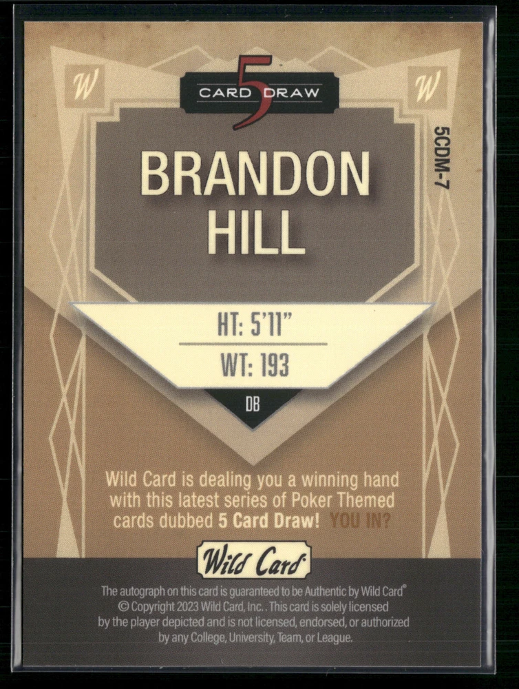 Brandon Hill 2023 Wild Card 5 Card Draw Auto 3/4
