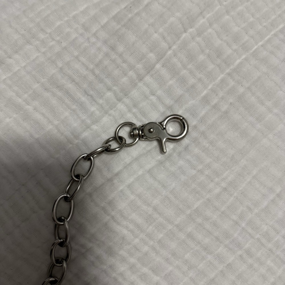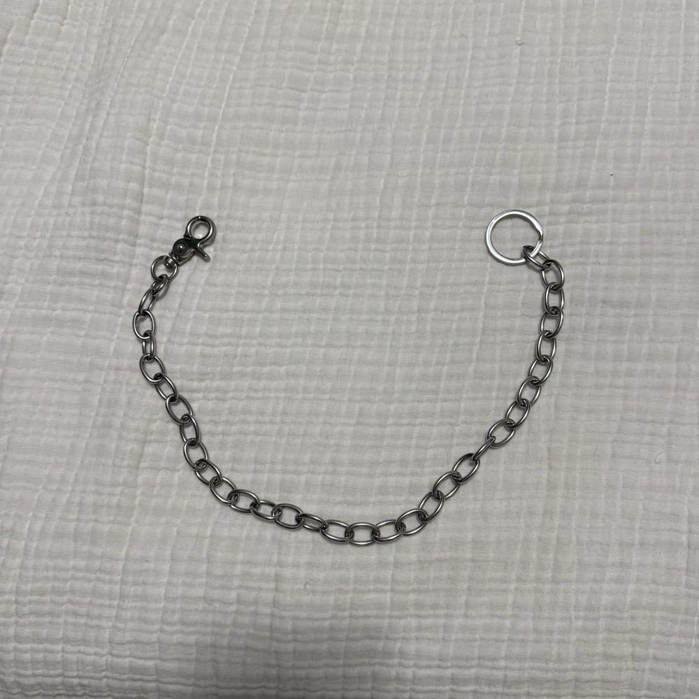 Elevate your accessory game with this stylish Brandy Melville Silver Wallet Side Chain Clasp and Wallet Hoop. Perfect for women who love to keep their essentials close, this key chain features a detachable wallet hoop with a ring and clasp accent. The stainless steel material ensures durability while the silver color adds a touch of elegance. The wallet hoop is perfect for festivals and celebrity-themed events, with a solid pattern and a one-size-fits-all design. This key chain is a must-have for any stylish woman who wants to add a touch of sophistication to her accessories. Made in China, this item is not handmade and cannot be personalized. Good used condition - all wear is pictured please let me know if you have any questions 🥳
