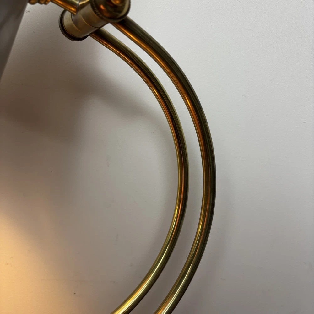 Brass Desk Lamp An incredibly aesthetic desk lamp that blends an antique brass look with a contemporary shade. The main body has a traditional and somewhat vintage look that is contasted with the more modern style shade. This contrast creates a lamp that feels homely and unique. There are two levers to adjust the lamp. One adjusts the angle of the arm and the other adjusts the angle of the shade. These are super tactile and a great feature to adjust the lamp to any space. These come complete with LED bulb and built in, in-line switch. *Please note that this lamp is ex-display. This does have a small imperfection where the paintwork on the shade is chipped. This is therefore offered at a heavily discounted rate. So if you can live with this imperfection, you’ll be grabbing a bargain!* Measurements: Height: 50cm Base Diameter: 18cm Shade Diameter: 20cm Free U.K. delivery via Royal Mail. Please enquire for more details.