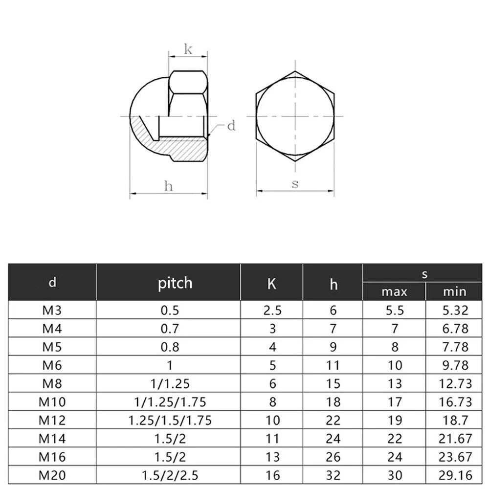 Drive Style: Hex Type: Dome Nuts Thread Size: M3 M4 M5 M6 M8 M10 M12 M14 M16 M18 M20 Shape: Dome Head Style: Domed Brand: GooBetter Model: DIN 1587 Grade: Solid Brass MPN: Does Not Apply Material: Brass System of Measurement: Metric Country/Region of Manufacture: China Finish: Brass End Type: Open