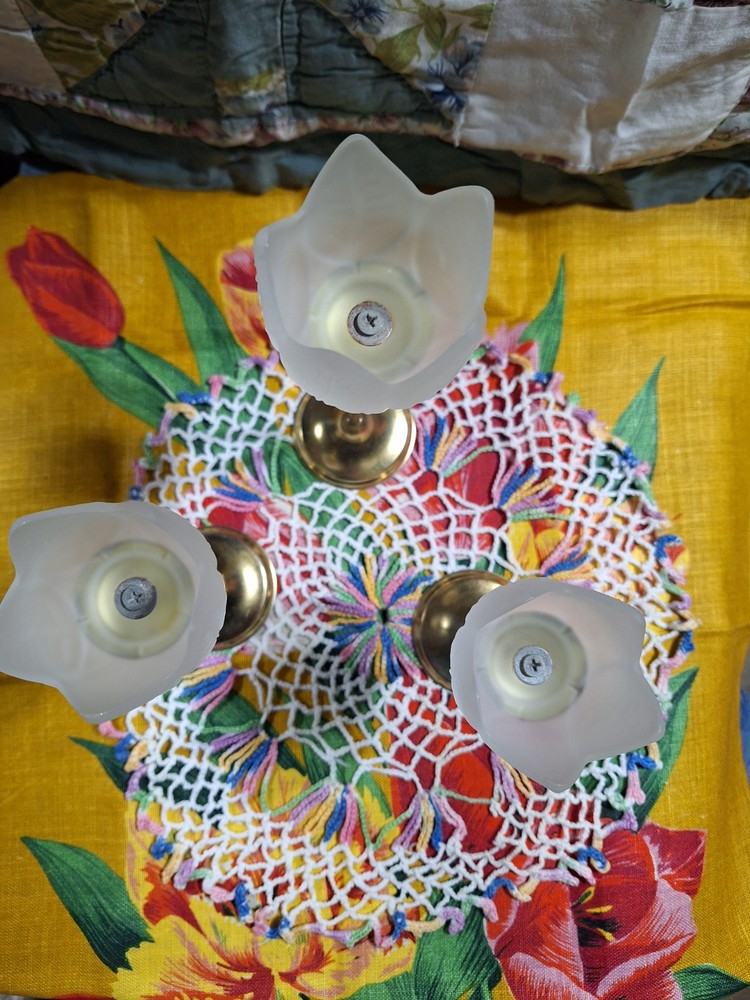 $ 15.82Hand Painted Artglass Glass Tealight Candle Holder/Lamp Orange & Green w/ Tulips