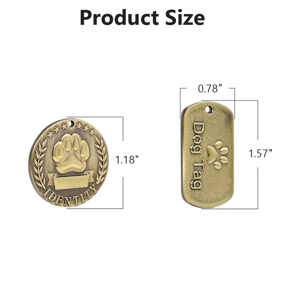 Brass Personalized Dog Tags Military Custom Engraved Pet Name ID Tag For Collar Package Includes: 1 Pcs Pet ID Tag AFTER PURCHASE PLEASE SEND ENGRAVING INFORMATION THROUGH EBAY MESSAGE NOTE! Custom Engraved Pet tags! A maximum of 3 lines and 16 fonts per line can be engraved on the tag. SHAPES AND SIZES AS FOLLOWS: Round: 1.18" x 1.18" Rectabgle: 1.57" x 0.78" Weight: 0.3 OZ Note: Please allow slight dimension difference due to different manual measurement. Due to the shooting angle and the display, the goods may have a color difference from the picture. Thank you for your kindly understanding. Guarantee • Fast & Free Shipping on ALL Orders We believe that you should enjoy the benefit of FREE Shipping on all of your orders within the all Continental States. That's why no matter what you buy, we will ship it for FREE, so the price you see is exactly what you pay. No hidden fees or shipping charges. • Most Items Delivered in 2-6 Business Days When you're buying from us, you deserve fast and reliable service. That's why we have a "Same Business Day" processing in place and wide range of shipping options to choose from in order to deliver your package as soon as possible. *2-6 business days’ time-frame is NOT GUARANTEED and was statistically calculated based on all previous orders. • ALL Orders Placed On Business Days Before 4 PM EST Will Be Shipped Same Day Why wait a day or more for your order to ship? All orders placed before 4 pm EST, Monday to Friday, ship the SAME day. Orders placed on Friday after 4 pm EST, Saturday and Sunday will be shipped the next Monday (if business day). We are closed on all Federal Holidays. • 30 Days Money Back Guaranteed! We will gladly accept your return within 30 days of the original purchase. Please, see below for our full Returns Policy. Shipping • Most orders arrive at your door in 2-6 Business Days FOR FREE! • Place your order before 4 pm EST and it will be shipped the same day, Monday to Friday, excluding major holidays. • We will ship your order to your PayPal Verified address provided. • Please verify your address and make sure that it is your current address before making your payment. Any address change requests after your payment CANNOT be guaranteed. • We do not include invoice with our shipments. Feedback • Positive feedback is automatically done once your order is shipped. • We appreciate all our customers to post a Positive Feedback and "Five-Star" scores. • If for any reason you are not satisfied with your purchase. Please contact us via eBay Message and We will do our best to satisfy you! Payment & Cancellation • Instant PayPal payment is required. • We also accepts Visa, MasterCard, Discover, and American Express through PayPal guest checkout. • Sales tax is charged by eBay based on your shipping address. • To uphold a shipping speed, your order will be processed almost immediately. If you change your mind after your payment is confirmed, we will do our best to stop the order, however, we CANNOT guarantee the cancellation. Return • We will gladly accept your return within 30-Days of the original purchase. • Our return process is simple and fast: 1. We will pay for the return shipping label if you received a broken/defective item(s) or the item(s) doesn't match our description. As soon as we receive the item(s) back we will process a refund for the item(s)which was/were returned. 2. You will be required to pay for the return shipping label if you changed your mind or no longer need the item(s). As soon as we receive the item(s) back we will process a refund for the item(s) which was/were returned. • If we'll receive a package back because of the incorrect address, the refund will be processed excluding our shipping cost. Contact Us • Send us a message on eBay and we will answer within 24h on business days. On Aug 20, 2024 at 04:35:10 PDT, seller added the following information: