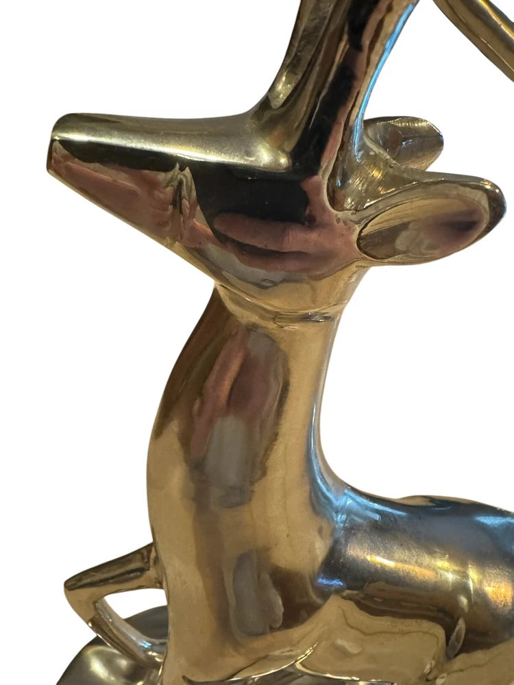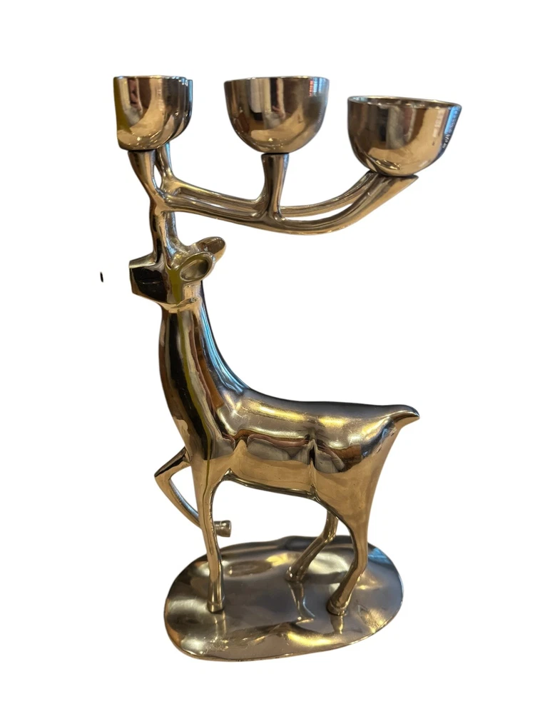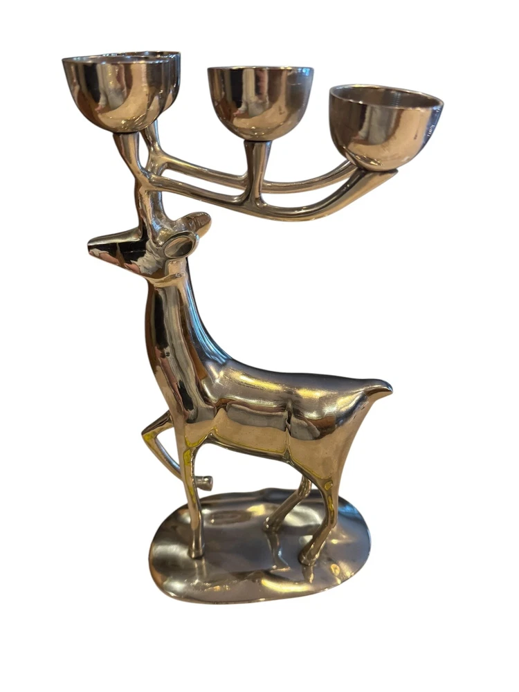 Add a touch of holiday magic to your home with this elegant Brass Reindeer Candle Holder. The nickel finish and intricate antler design make it a perfect addition to any Christmas decor. Use it to hold your favorite scented candle and let the warm glow fill the room. Crafted with care, this candle holder is not only beautiful but also functional. The six-inch diameter makes it perfect for any standard candle, and the sturdy construction ensures that it will last for years to come. Whether you're looking for a thoughtful gift or simply want to add some festive cheer to your own home, this Brass Reindeer Candle Holder is sure to impress.