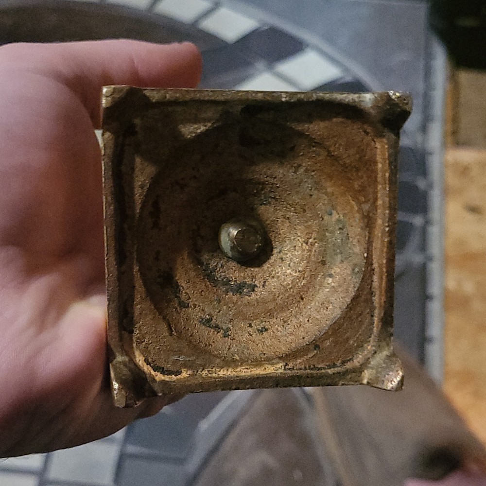 These brass taper candle holders are a set of 2 with a square base, perfect for any room. Made of brass and featuring a gold color, they are suitable for taper candles and suitable for all occasions. The elegant design and time period manufactured between 1900-1949 give them a touch of vintage charm. Ideal for adults looking to add a touch of style to their decor.