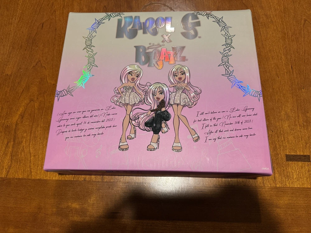 The "Bratz x Karol G Collector Doll" is a limited edition fashion doll from the Bratz franchise. This doll comes with 3 outfits and accessories, making it a collector's edition item. The doll is a girl doll with original packaging, and it was manufactured in China. In hand ships next day!