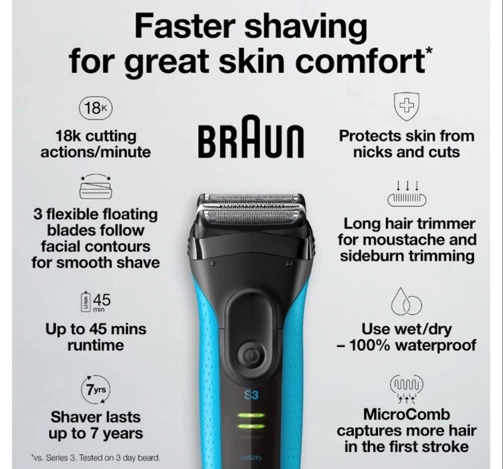 Braun Series 3 ProSkin 3040s Electric Shaver Rechargeable Coordless Wet & Dry. Box may have some damage from pallet