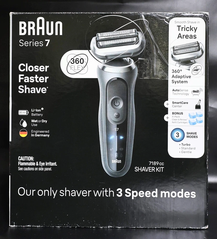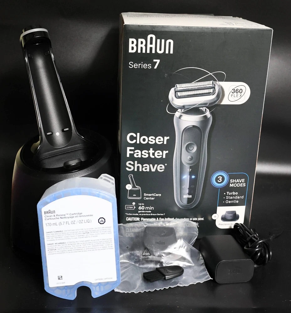 Braun Series 7 360° Flex Men's Electric Shaver Kit, Wet/Dry (7189cc) Brand New, Never Used! Box has been opened but all components are new. Cleaning cartridges are all sealed