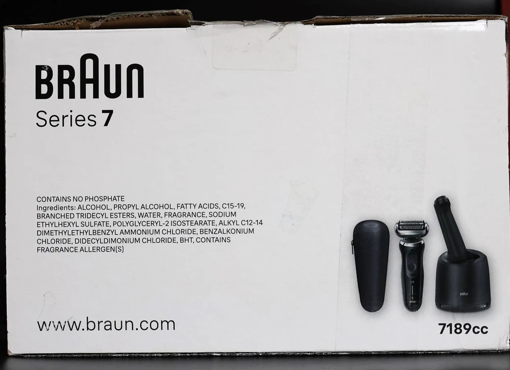 Model: Braun Series 7 7189cc Features: Adjustable Speed, Cleaning Indicator, Cleaning System, Cordless, LED Display, Pivoting Head, Quick Charging Time, Rechargeable, Travel Case, Waterproof, Wet/Dry Body Area: Face, Neck Brand: Braun Type: Shaver Kit Department: Men Number of Heads: 1 Power Source: Charging Stand UPC: 069055142356 Color: Black gtin13: 069055142356 MPN: 70N7500 cc