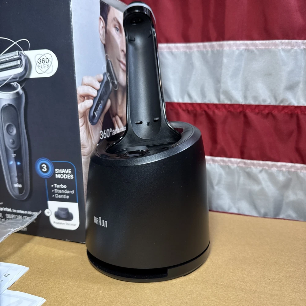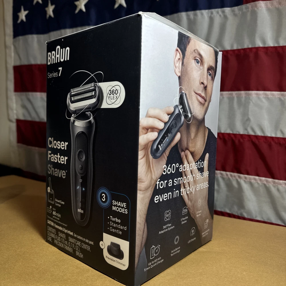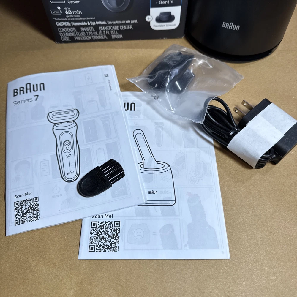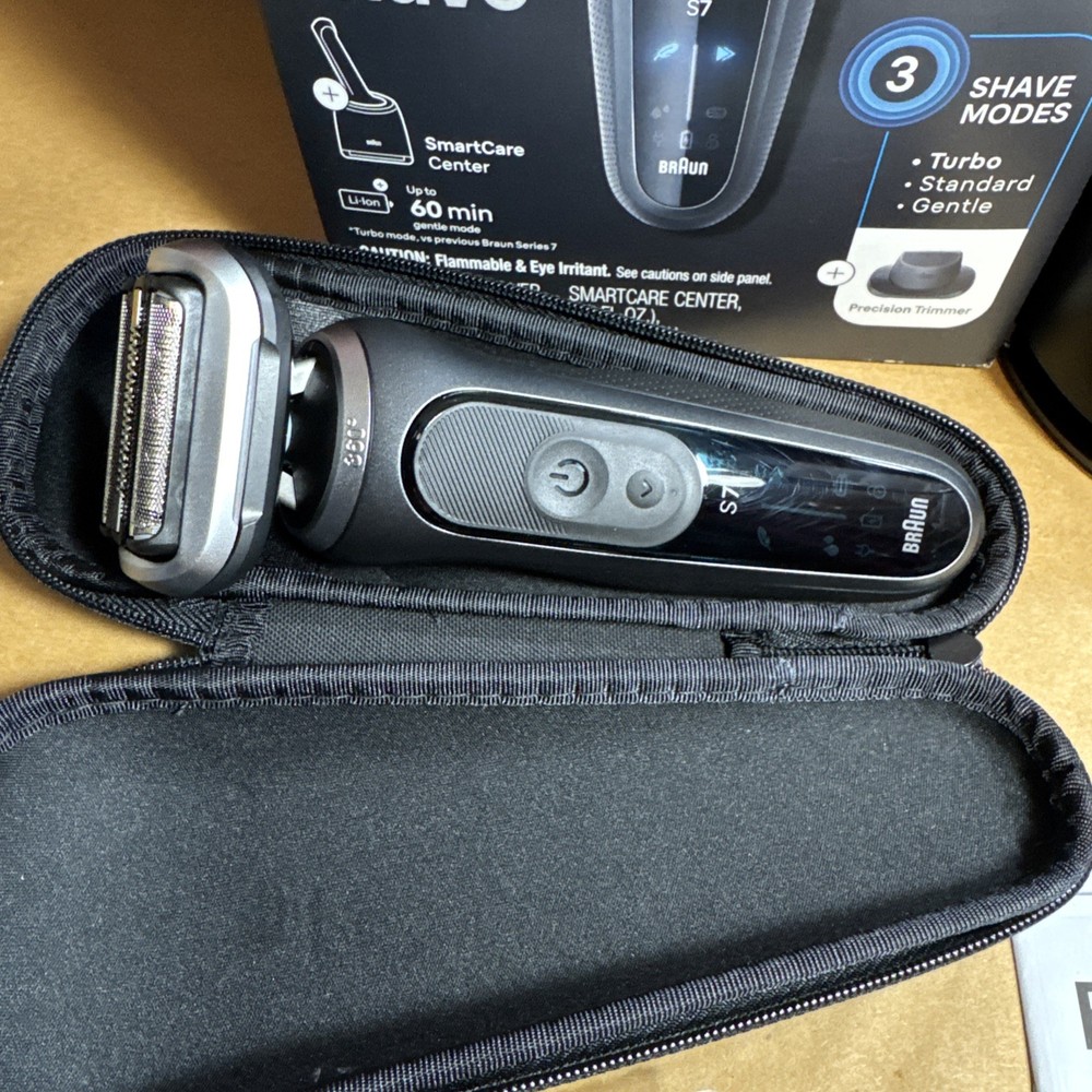 Braun Series 7 7171cc Electric Shaver Includes: • Shaver (Model 7171cc) • Charging cord • Travel case • Original paperwork Condition: • Open box condition • Shaving head appears unused (no hair or residue present) • Charging cord appears unused • Light cosmetic surface scratches on glossy display panel from handling/storage • Scratches are cosmetic only and do not affect performance Unit powers on and functions properly. Please review photos carefully for exact cosmetic condition.