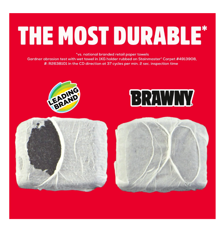 Item description from the seller Brand Brawny Unit Count 1 Count Sheet Count 600 Ply Rating 2-Ply Special Feature High Absorbent About this item Brawny Tear-A-Square Paper Towels offer 3 sheet sizes (Quarter, Half and Full) so you can choose exactly what you need to fit the task These tough paper towels are 2X more durable to scrub tough messes (vs leading mainstream store brand) Our quarter-sized sheet option provides you with the power to choose the perfect size sheet for your mess Strong, durable, and absorbent—perfect for your toughest bathroom, kitchen, backyard, playroom, car, and pet messes Our sourcing practices are certified by the Sustainable Forestry Initiative Fiber Sourcing Standard, and we work with our suppliers to replenish the trees we use Each pack contains 6 Double Rolls of white Brawny Tear-A-Square paper towels Each Double Roll has 100 2-ply sheets and is equal to 2 Brawny Regular Rolls, so you can change the roll less often Unlock up to 15% or more savings when you subscribe and save on Brawny Paper Towels