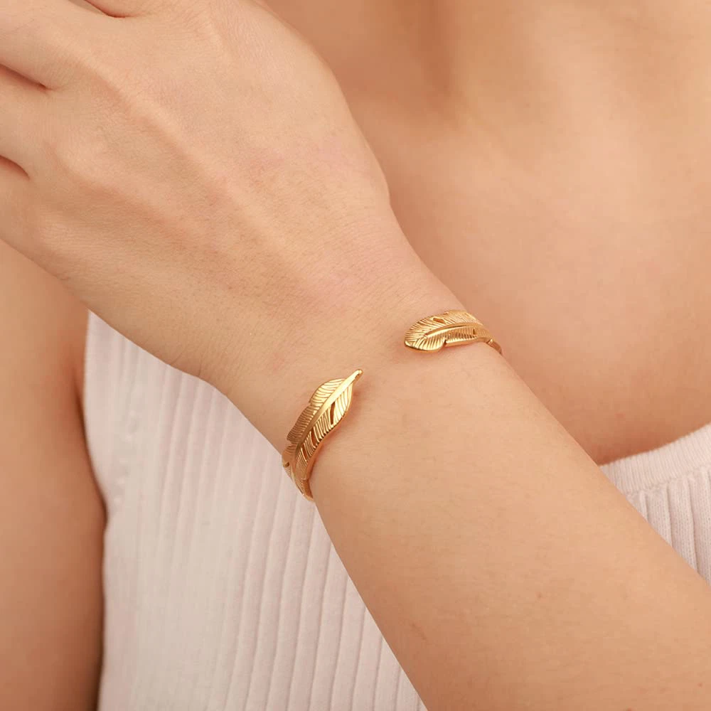 Size:2.4in+0.3in Weight:16.5g This open cuff can be gently adjust into the size you want! Color :Gold We are trying to show you the real color of the item. And please understand that there will be a slight of difference in color due to the different monitor device! Materials: Stainless steel. Great touch of silky-like stainless steel and comfortable to wear. Please try not to let accessory near with water, alkali liquor and other caustic liquids. Keep it in a seal and dry package can maintain the brightness of the accessory. Celebrity's choice! Simple design will never out of fashion.This item is cute and lightweight.It can be a great gift for your female or male friend,lover,mother. The simple and vintage design also goes well with daily life.This set of eye-catching bling jewelry will definitely win lots of compliments in party or other special occasion. Occasion:Party,Prom,Anniversary,Wedding,Ball,Banquet,Carnival,Holiday,Birthday,Pageant.Simple design and easy to wear,it suit for any ages women and men. Please feel free to contact us if you have any question! We will reply your email in 24 hours. WOMEN BRACELET