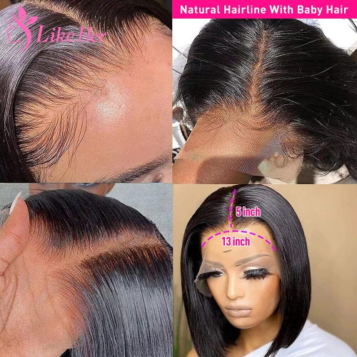 Straight Bob Wig Lace Front Human Hair Wigs For Women Brazilian Human Hair HD Lace Frontal Wig 13X5X2 Glueless Frontal Human Wig Bob Wig Lace Front Human Hair Wig Like Her Hair Bob Lace Front Wig Lace Part Wig , Affordable Good Quality Human Hair , Soft And Full , It Is Lustrous And Nice In Any View ,Easily Install And Caring In Your Diary Life. 100% Human Hair Natural Pre Plucked Hairline With Baby Hair Hair Wigs Natural Looking Wigs Live Longer Than a Year, Pre-plucked Natural Hairline With Baby Hair Around ,Natural Scalp After Installing. Easy To Restyle Like Her Straight Bob Wig Lace Front Human Hair Wigs ,Enough Full and Lustrous Hair, Absolutely Smooth From the Top to the End., Can Make Ponytail & Bun & Half Up Half Down. U Can Style it as You Like Transparent lace frontal wig 4 Combs Totally(Front, Back, And Two Sides), Healthy, Breathable Neat Net, Adjustable Caps More Suitable For You