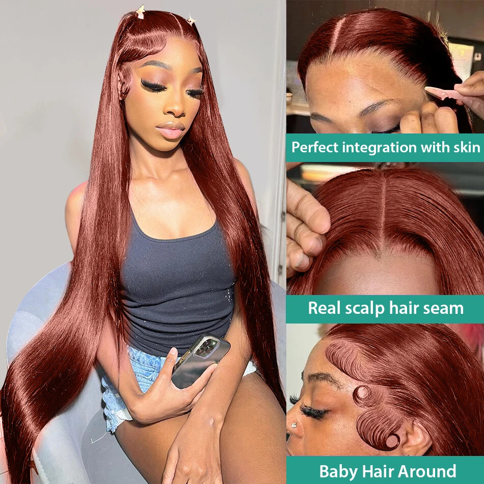 This wig is absolutely stunning! The color is a gorgeous reddish brown that looks natural and vibrant. The Brazilian human hair feels so soft and luxurious, and the lace front blends seamlessly for a flawless look. It’s pre-plucked, so the hairline looks realistic right out of the box. Super easy to style and super comfortable to wear all day. Definitely worth every penny—I get so many compliments!