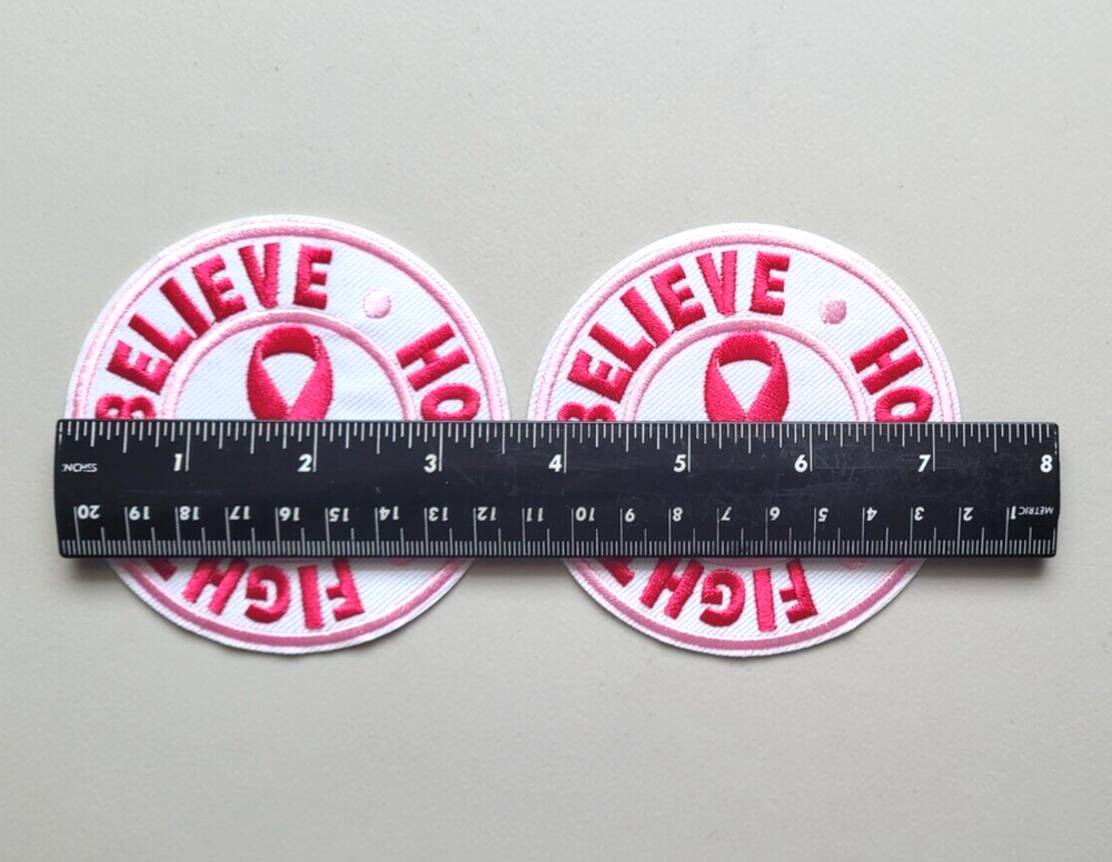 *BREAST CANCER BELIEVE HOPE FIGHT PATCHES* L3A See ruler in pictures for patch sizes 3 1/2 inches round NEW iron on or sew on patches FAST / FREE SHIPPING Patches will be shipped USPS with tracking Check all pictures good before you buy $$$ Check out my other PATCHES for sale in my Ebay store * Buy with confidence see my ratings and feedback * Check out my other items ! I STRIVE FOR A FIVE STAR RATING. THANK YOU. Froo www.froo.com | Froo Cross Sell, Free Cross Sell, Cross promote, eBay Marketing, eBay listing Apps, eBay Apps, eBay Application