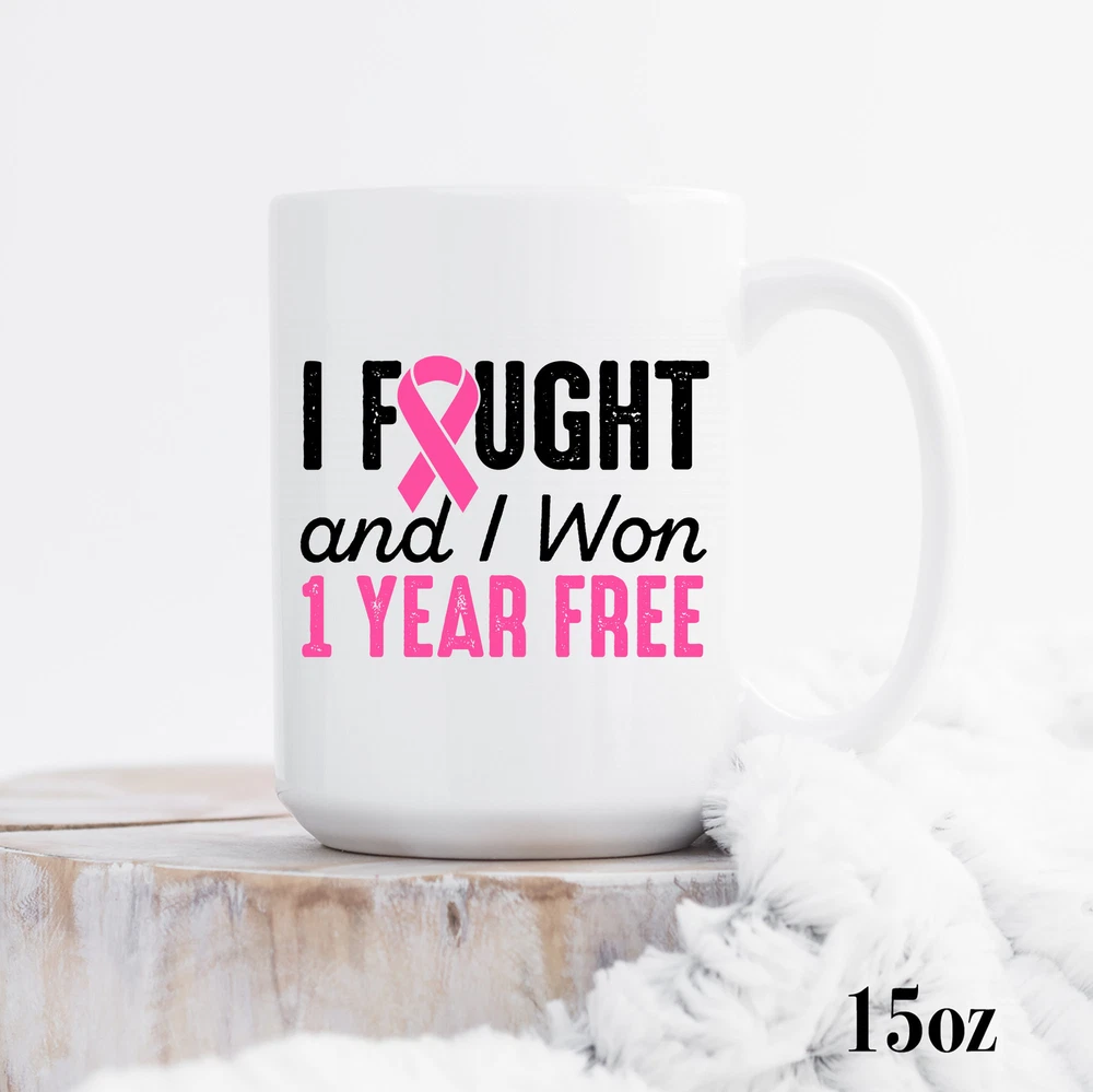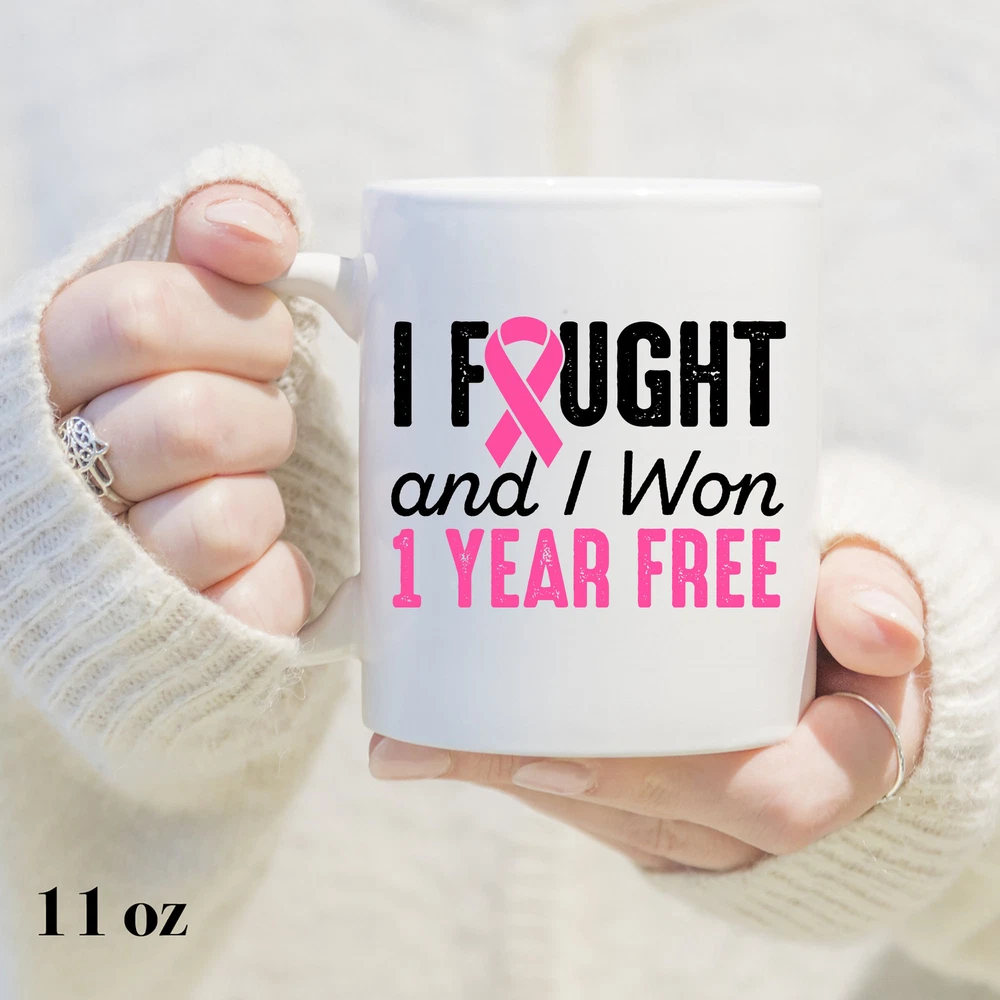 Breast Cancerversary 1 Year Free Mug Breast Cancer Survivor Breast Cancer Product Details.. This high quality 11oz. ceramic white mug has a premium hard coat that provides crisp and vibrant color reproduction sure to last for years. Perfect for all hot & cold beverages. The highest quality printing possible is used. It will never fade no matter how many times you wash it. Material: 100% Ceramic. Print both sides. Dishwasher and Microwave Safe. High Gloss + Premium White Finish. Printed in the U.S.A. Personalized & Custom. We support personalized and custom mug to add custom, when placing an order, you can add notes to the "order note" in shipping address section. Also you can contact us directly via message. Shipping Info. Ready to ship in 1 to 2 business days, All products are made-to-order and proudly printed in the United States. Shipped by USPS and DHL, You will receive your order in 5-7 days. Replace & Refund. All products are defective during shipping broken, chipped will be replaced free of charge. You are not satisfied with the product, we will refund 100% money to you. If any other issues arise, please do not hesitate to message, we would be more than happy to assist you.
