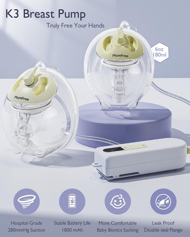 Hands-Free Breast Pump K3 - Experience Unmatched Freedom and Comfort Discover the K3 Portable Low Noise Wearable Breast Pump, designed for modern mothers who value convenience and efficiency. This innovative breast pump combines advanced technology with user-friendly features to make breastfeeding easier than ever. Key Features: Smart LED Display: The clear and intuitive LED panel provides real-time information on pumping time and battery level. Customizable Modes: Select from 3 distinct modes—Stimulation, Expression, and 2-in-1—each with 9 adjustable levels to cater to your personal comfort and needs. Ergonomic Design: The lightweight pump (only 0.3lb) with a convenient belt clip allows for hands-free pumping, making it easy to multitask or relax while expressing milk. Large Capacity: Each milk collector holds up to 6oz (180ml), allowing for efficient pumping sessions without frequent refills. Long-lasting Battery: The powerful 1800mAh battery provides ample usage on a single charge, perfect for busy moms on the go. Unique Double Seal Flange: The K3 features a unique double seal flange design for a secure fit, preventing leakage and ensuring hygienic milk collection. Five different sizes of BPA-free silicone flanges (15/17/19/21/24mm) provide personalized comfort, meeting the needs of mothers at various stages. Effortless Cleaning and Portability: Designed with convenience in mind, all removable accessories are easy to clean, ensuring a worry-free experience. The included storage bag neatly organizes all breastfeeding accessories, allowing you to take your pumping routine wherever you go. Transform your breastfeeding journey with the K3 Breast Pump—where innovation meets comfort for the modern mother. Compact & Efficient: Each milk collector holds up to 180ml (6oz) of breast milk, providing ample capacity for efficient sessions without the need for frequent refills. The drop-shaped design of the breast pump(each 130g/0.28lb) fits seamlessly in the pump bra combining soft food-silicone to ensure better comfort and safety. Its ultra-lightweight design ensures maximum no sense of additional burden throughout your pumping routine.