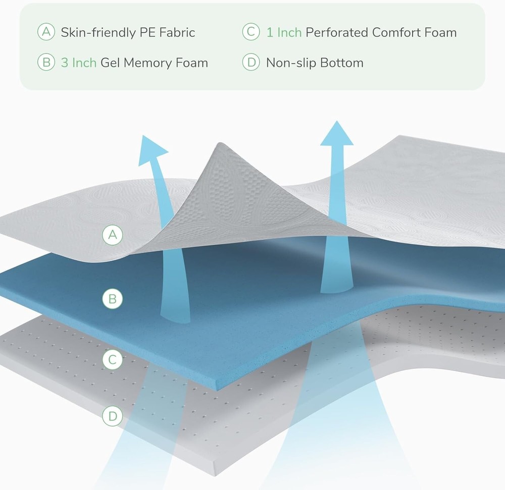 This mattress topper is a game-changer! The 4-inch thickness provides amazing support, and the cooling gel layer keeps me comfortable all night. Motion isolation works perfectly—no more waking up when my partner moves. The bamboo charcoal foam feels luxurious, and it’s helped reduce my back pain. Super easy to set up, and it really extends the life of my old mattress. Highly recommend for better sleep!