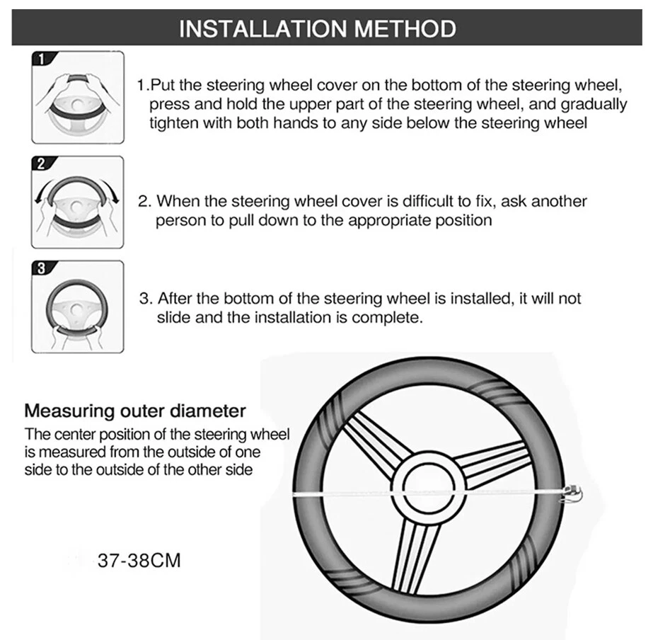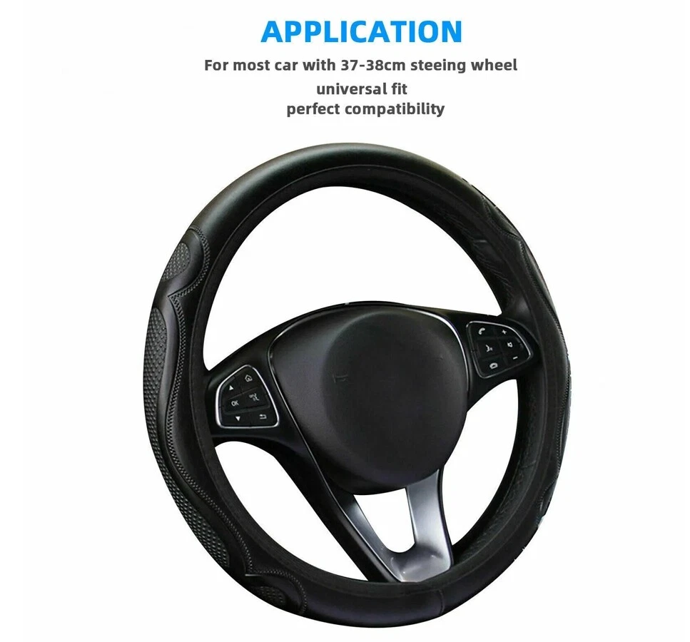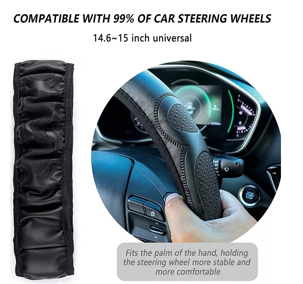 Item Details: Soft to the touch, non-slip and waterproof Easy to clean, stylish appearance Loose and easy to store Suitable for 37-38CM /15inch diameter steering wheel Color: Black (As Pictures Show) Material: Faux leather Package Contents:1 x Steering wheel cover Note: 1. The real color of the item may be slightly different from the pictures shown on website caused by many factors such as brightness of your monitor and light brightness. 2. Please allow slight manual measurement deviation for the data. Item Details: Soft to the touch, non-slip and waterproof Easy to clean, stylish appearance Loose and easy to store Suitable for 37-38CM /15inch diameter steering wheel Color: Black (As Pictures Show) Material: Faux leather Package Contents: 1 x Steering wheel cover Note: 1. The real color of the item may be slightly different from the pictures shown on website caused by many factors such as brightness of your monitor and light brightness. 2. Please allow slight manual measurement deviation for the data. Brand Unbranded Color Black Manufacturer Warranty 3 Months Country/Region of Manufacture China Universal Fitment Yes Type Steering Wheel Cover Features Easy Installation, Heat Resistant, No Drilling Required Material Microfiber Leather