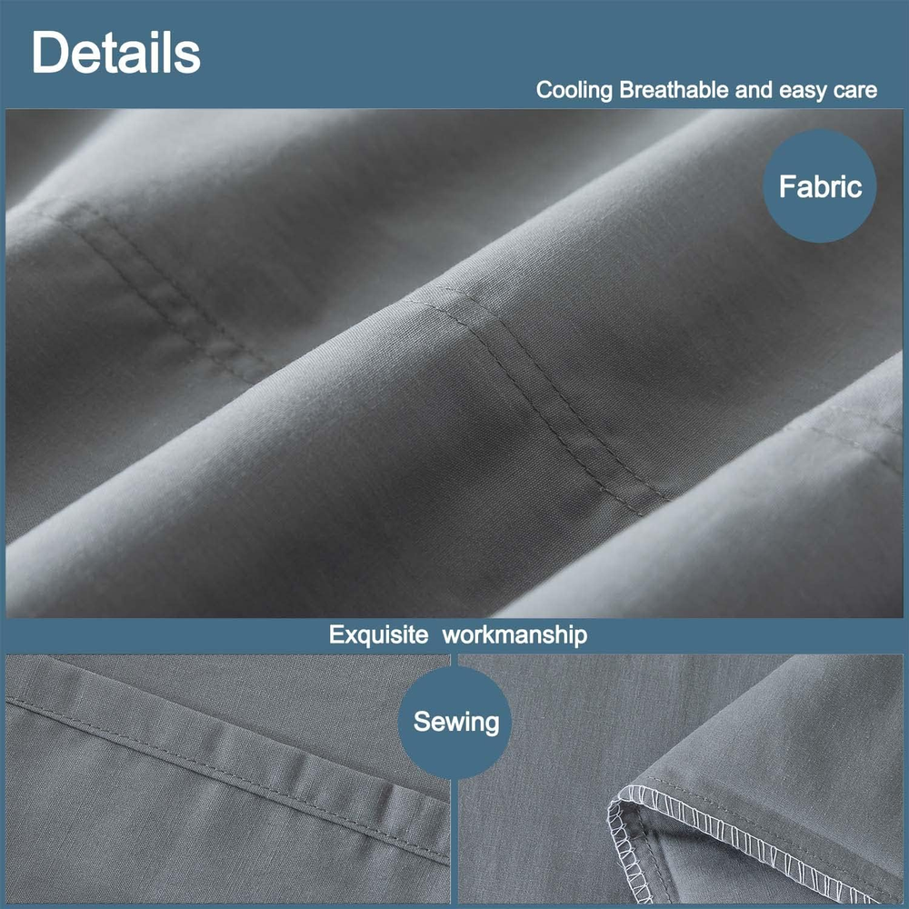 FOR YOU Whatsbedding Body Pillow Cover Cotton Fabric, Long Pillowcase Breathable & Skin-Friendly, Envelope Closure - Grey (20X54 Inch) FEATURES Material: We promise 100 gsm natural cotton and poly blend fabric. This decides the body pillow cover breathable, skin-friendly, and more cooling and robust than pure cotton Feature: Single color is simple but elegant. The tight weave fabric is wrinkle resistant and not easy to fading & pilling. The cover is breathable, absorbent, cooling and robust for daily using for whole families Design: Envelope closure design which is easier for you to put it on the body pillow or take it off, and keep your body pillow in the place Easy care: Machine washable on low, gentle mode and tumble dry on low, iron on low if neccessary. Not bleach. The more washes and the more soft After sales: WhatsBedding is committed to provide quality products and 100% satisfaction service. Please consider to contact us if there is any concerns Product Description Item model number Grey Closure Type Envelope Style Classic Number of Items 1 Color Grey Pattern Solid Brand WhatsBedding Material Cotton Country of Origin China Pillow Type Bed Pillow Number of Sets 1 Item Weight 7 ounces Manufacturer WhatsBedding Theme Solid Color Product Care Instructions Machine Wash Recommended Uses For Product Sleeping Size BODY Special Feature Bagged Product Dimensions 54"L x 20"W Fabric Type Cotton Number of Pieces 1 20.0 "w x 54.0 "w. Weight: 7.0 oz PAYMENT We accept all payments via Ebay using Credit Cards , PAYPAL , Apple Pay and many others SHIPPING We are always working hard to ensure your package arrives as soon as possible. Please understand that some factors like weather, high postal traffic, and the performance of shipping companies are outside of our control. DELIVERY & RETURN POLICY We offer a 30-Day Return Policy on items in which you are not completely satisfied with. You have the option of a full-refund or an exchange of the item. No returns are available on items shipped outside of the USA.