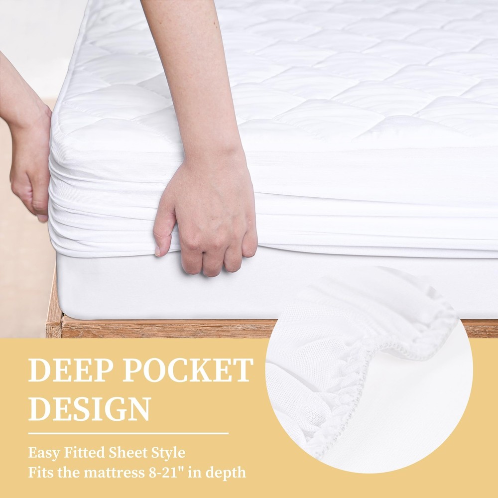 This mattress pad is a game-changer—super soft, no crinkly sounds, and stays cool all night. The waterproof layer works flawlessly without feeling plastic-like, and the quilted design keeps it fluffy and even. Perfect for kids, pets, or anyone who wants extra protection while staying comfortable. Washes well and fits snugly—highly recommend!