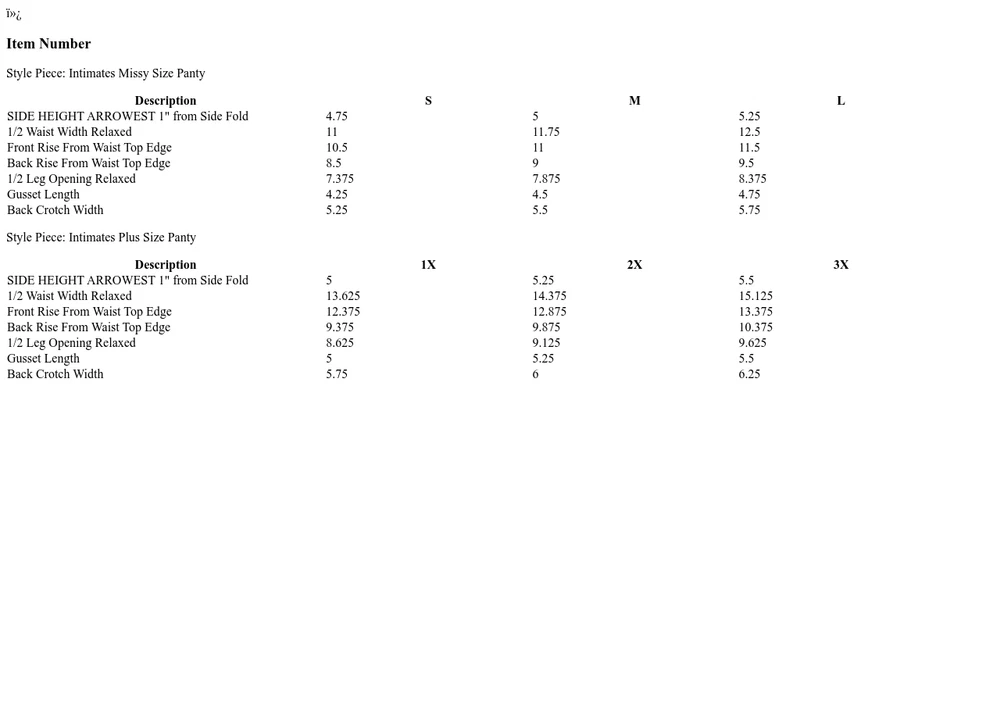 Condition: This item is brand new without tags. Description: Fabrication: Air Effects knit Features: seamless, full-coverage seat, wide waistband, light elastic leg openings, UltimAir® knit gusset with wicking properties Rise: at the waist Fit: fitted; cut to follow the lines of the body Content: body 93% nylon/7% spandex; gusset 95% nylon/5% spandex Care: machine wash, tumble dry This is a Breezies fit, not a QVC® fit Imported Retail Price: $29.00 Brand: Breezies SizeType: Plus Size Size: 3X Visit Our Store Shop by Department Store Home Apparel Athletic Apparel Coats & Jackets Dresses Hosiery & Socks Intimates & Sleepwear Jeans Jumpsuits & Rompers Leggings Pants Shorts Skirts Suits & Blazers Sweaters Sweats & Hoodies Swimwear T-Shirts Tops & Blouses Vests Shoes Athletic Boots Flats & Oxfords Heels Occupational Sandals & Flips Flops Slippers Handbags & Accessories Handbags Accessories Men's Apparel Shoes Accessories Health & Beauty Home & Garden 100% guaranteed authentic Breezies Women's Plus Sz Panties 3X Air Effects Breathable Beige A628149 ADD TO WATCHLIST | ADD MODAVENUE TO MY FAV SELLERS IMPORTANT FAQs Are accessories such as belts included? Some items which are designed with belts or other accessories may not include those pieces. If you do not see the accessory in the photo, it is not included. What are the measurements of this item? Because sizing varies by designer, please refer to the designer's website for sizing guidelines. We apologize for the inconvenience, but due to the overwhelming number of requests we receive to do this, AND the large number of items we have for sale, we cannot provide any additional measurements. What if an item doesn't fit or I just don't want it? In these cases, we will be happy to issue you a refund if the item is in the same condition as originally shipped. Any tags or labels need to remain attached. For the quickest processing of your return, please contact us FIRST. To view more FAQs, visit our About Us page Item Details Shipping Easy Returns You deserve comfortable underwear. These seamless briefs are knit in Breezies Air Effects fabric with tiny perforations that allow air to pass through for breathability. And they feature a wide roll-resistant waistband and a wicking UltimAir® knit gusset. So whether you're sleeping, lounging, or running around town, they feel like the best thing you ever put on. From the Breezies® Intimates Collection. Condition: This item is brand new without tags. Description: Fabrication: Air Effects knit Features: seamless, full-coverage seat, wide waistband, light elastic leg openings, UltimAir® knit gusset with wicking properties Rise: at the waist Fit: fitted; cut to follow the lines of the body Content: body 93% nylon/7% spandex; gusset 95% nylon/5% spandex Care: machine wash, tumble dry This is a Breezies fit, not a QVC® fit Imported Retail Price: $29.00 Brand: Breezies SizeType: Plus Size Size: 3X Style/Model: A628149 SKU: A628149987302 SHIPPING METHODS US orders are shipped via USPS. SHIPPING & HANDLING TIME Total U.S. shipping time (handling and delivery) can take up to 7 business days. International shipping time can take up to 17 business days. Handling Time: Orders ship 1 business day after payment is received. You will receive a shipment notification email on the day your order ships. OUR 100% GUARANTEE If you receive an item which is not in the condition described, we will promptly provide you a postage-paid return label and issue you a complete refund upon its return. If your item doesn't fit or you don't want it, you can return it for a refund. Please contact us if you have any questions as we will be glad to assist. Returns are accepted up to 30 days after you received the item. Refunds are issued within 3-4 business days after we receive the item. We do not facilitate exchanges on eBay. ADD ITEM TO MY WATCHLIST | ADD TO MY FAV SELLERS IMPORTANT FAQs Are accessories such as belts included? Some items which are designed with belts or other accessories may not include those pieces. If you do not see the accessory in the photo, it is not included. What are the measurements of this item? Because sizing varies by designer, please refer to the designer's website for sizing guidelines. We apologize for the inconvenience, but due to the overwhelming number of requests we receive to do this, AND the large number of items we have for sale, we cannot provide any additional measurements. What if an item doesn't fit or I just don't want it? In these cases, we will be happy to issue you a refund if the item is in the same condition as originally shipped. Any tags or labels need to remain attached. You MUST CONTACT US before returning an item. View More FAQs About Us NEWSLETTER SIGN UP FAQs Add To Favorites Copyright © 2024 Wardrobe Technologies, Inc. All rights reserved.