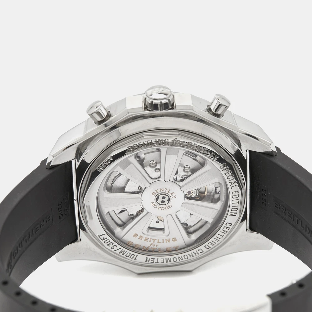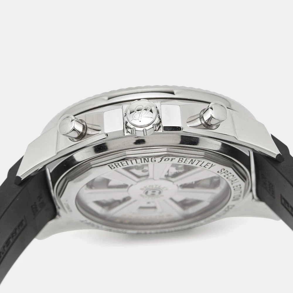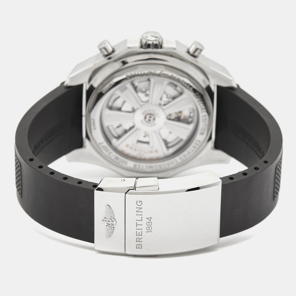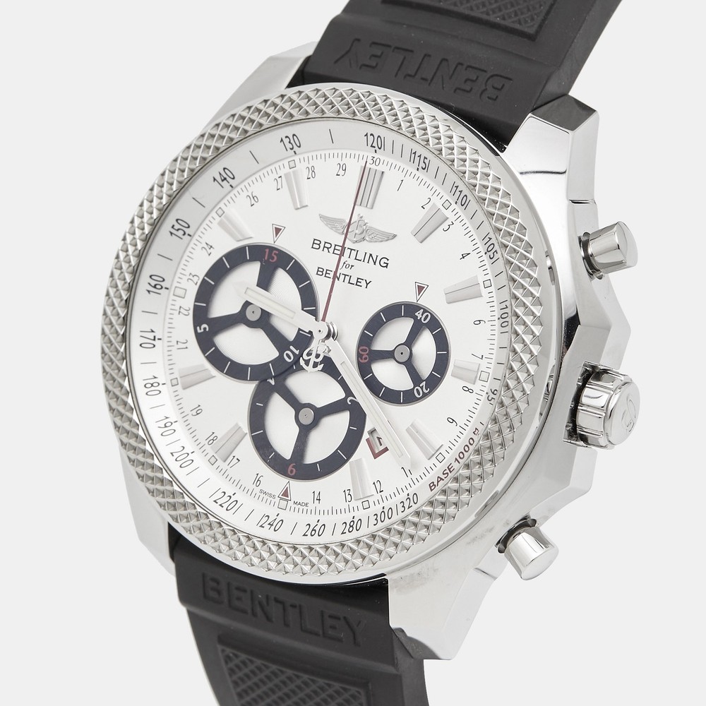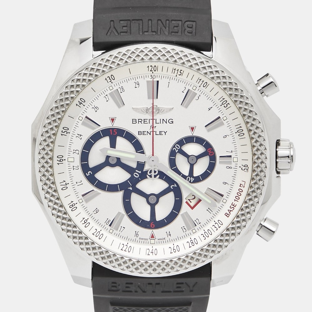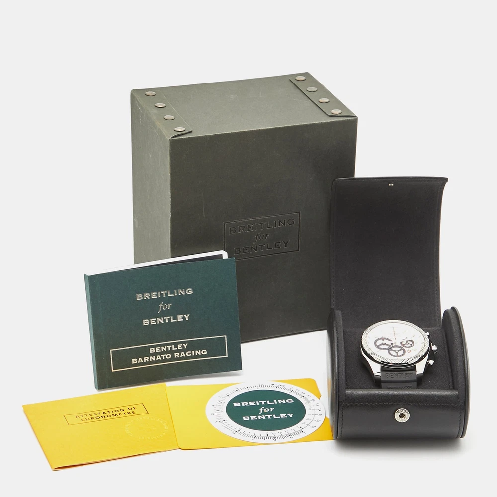 A meticulously crafted watch holds the promise of enduring appeal, all day comfort, and investment value. Carefully assembled and finished to stand out on your wrist, this Breitling for Bentley timepiece is a purchase you will cherish.Certified by The Luxury Closet - This item has gone through a detailed authentication process overseen by our experts. We offer a lifetime guarantee of authenticity on all our items. Import duties, taxes and charges are not included in the item price. These charges are the buyers responsibility. Please check with your country’s customs office to determine what these additional cost will be prior to buying. Our eBay Store About Us Contact Us Add to Favorite Sellers Breitling for Bentley Silver Stainless Steel Rubber Barnato Racing A25366 Men's Wristwatch 49 mm $6738.6 A meticulously crafted watch holds the promise of enduring appeal, all day comfort, and investment value. Carefully assembled and finished to stand out on your wrist, this Breitling for Bentley timepiece is a purchase you will cherish. Product Details Brand Color Silver Dimensions Material Stainless Steel Size 49 mm Outsole Width Outsole Length Heel Height Includes Original Box, Info Booklet, attestation de chronometre, scale, Original Case (minor discoloration) Certified by The Luxury Closet This item has gone through a detailed authentication process overseen by our experts. We offer a lifetime guarantee of authenticity on all our items. How We Check The in-house team of experts at The Luxury Closet is highly trained to verify the authenticity and the condition of the luxury products. They ensure that only 100% authentic items are put on sale.The evaluation process is unique with its own mix of assessment criteria and differs according to the category. Each item is evaluated based on the following combination of hallmarks, hardware, stitching, symmetry, material, craftsmanship, stamping, codes, hologram stickers, and packaging. Our authenticators also check if the items have been modified or amended (e.g., aftermarket diamonds, replaced batteries, repaired bags, etc.) International Buyers Import duties, taxes and charges are not included in the item price. These charges are the buyers responsibility. Please check with your country’s customs office to determine what these additional cost will be prior to buying.