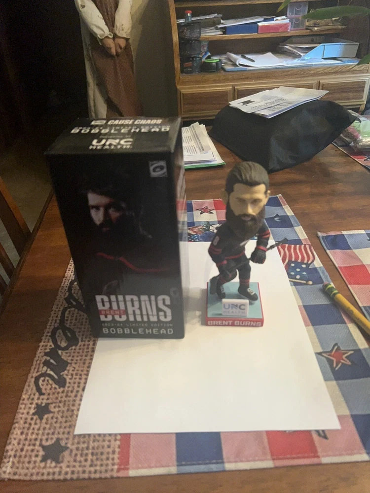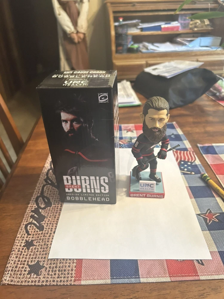 The product is a limited edition Brent Burns #8 bobblehead featuring the Carolina Hurricanes team logo. It is officially licensed by the BDA Sports brand and is part of the National Hockey League (NHL) collection. The bobblehead is designed in one size, colored black, and is suitable for male fans. Made in China, this collectible item celebrates the player's presence on the team and is a must-have for hockey enthusiasts looking to add to their memorabilia collection.