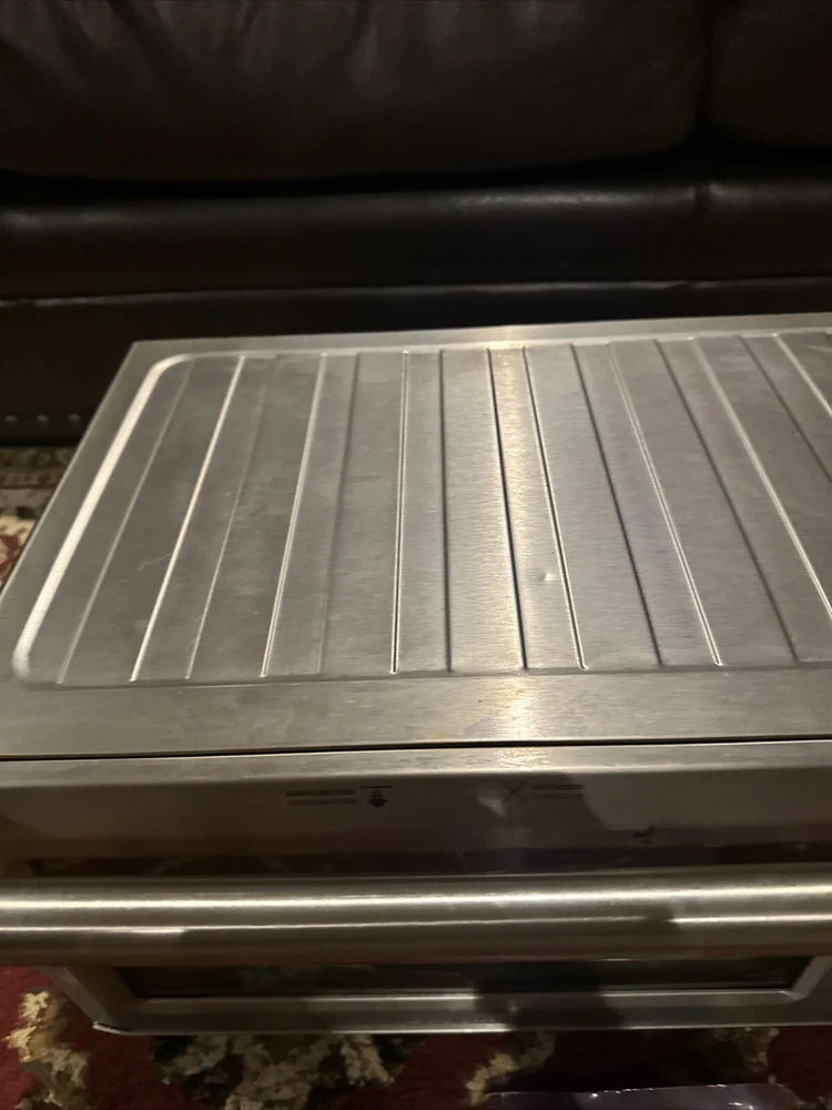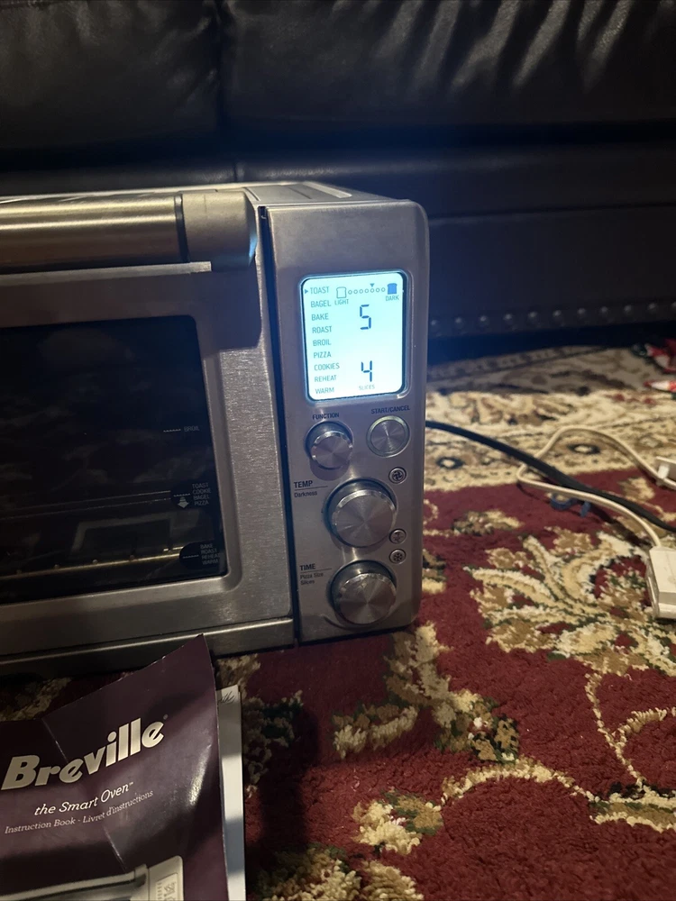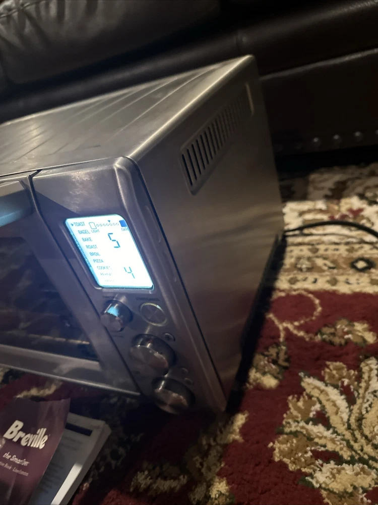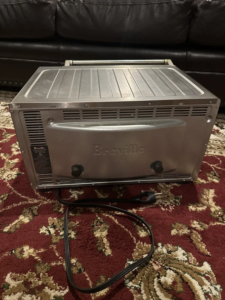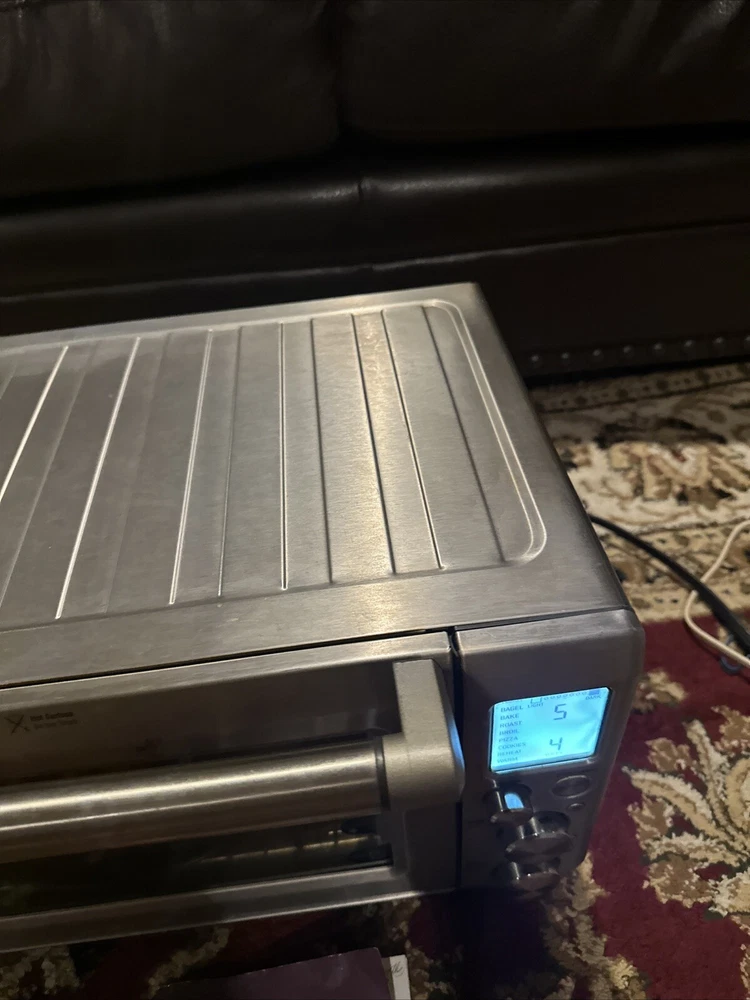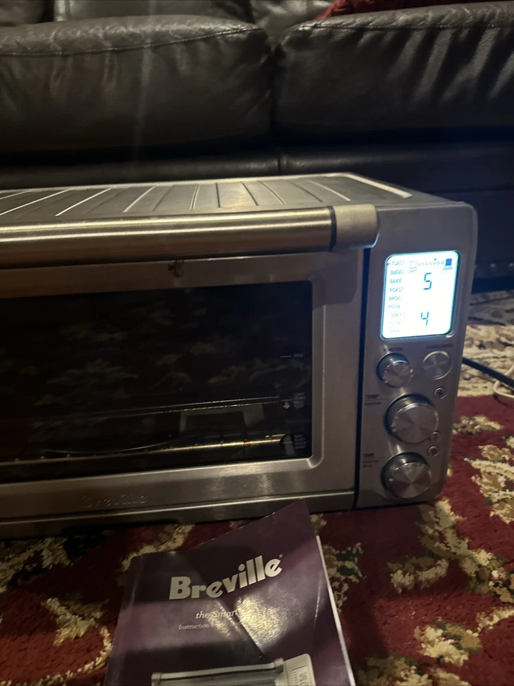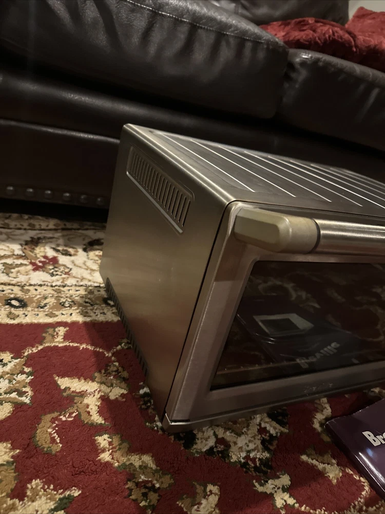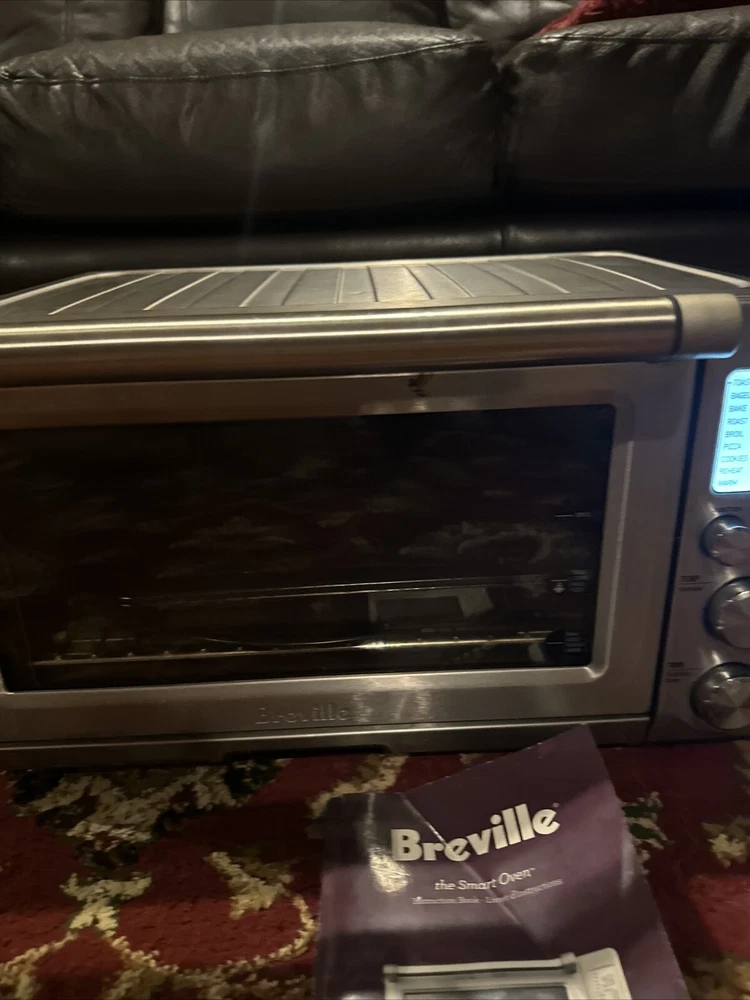 Introducing the Breville BOV900BSSUSC Smart Oven Convection Toaster Oven in Brushed Stainless. This countertop oven is perfect for baking and toasting, with a powerful 1800 W and voltage of 120 V. The aluminum material and silver color give it a sleek and modern look, while the brushed finish adds a touch of elegance. This unit type oven has a length of 21.5 inches, a width of 17.5 inches, and a height of 12.7 inches. It also features convection technology for efficient and effective cooking. The Breville BOV900BSSUSC Smart Oven Convection Toaster Oven is a must-have for any kitchen, and is sure to impress with its versatility and functionality. Good used condition, normal wear. Comes with pans and owners manual.