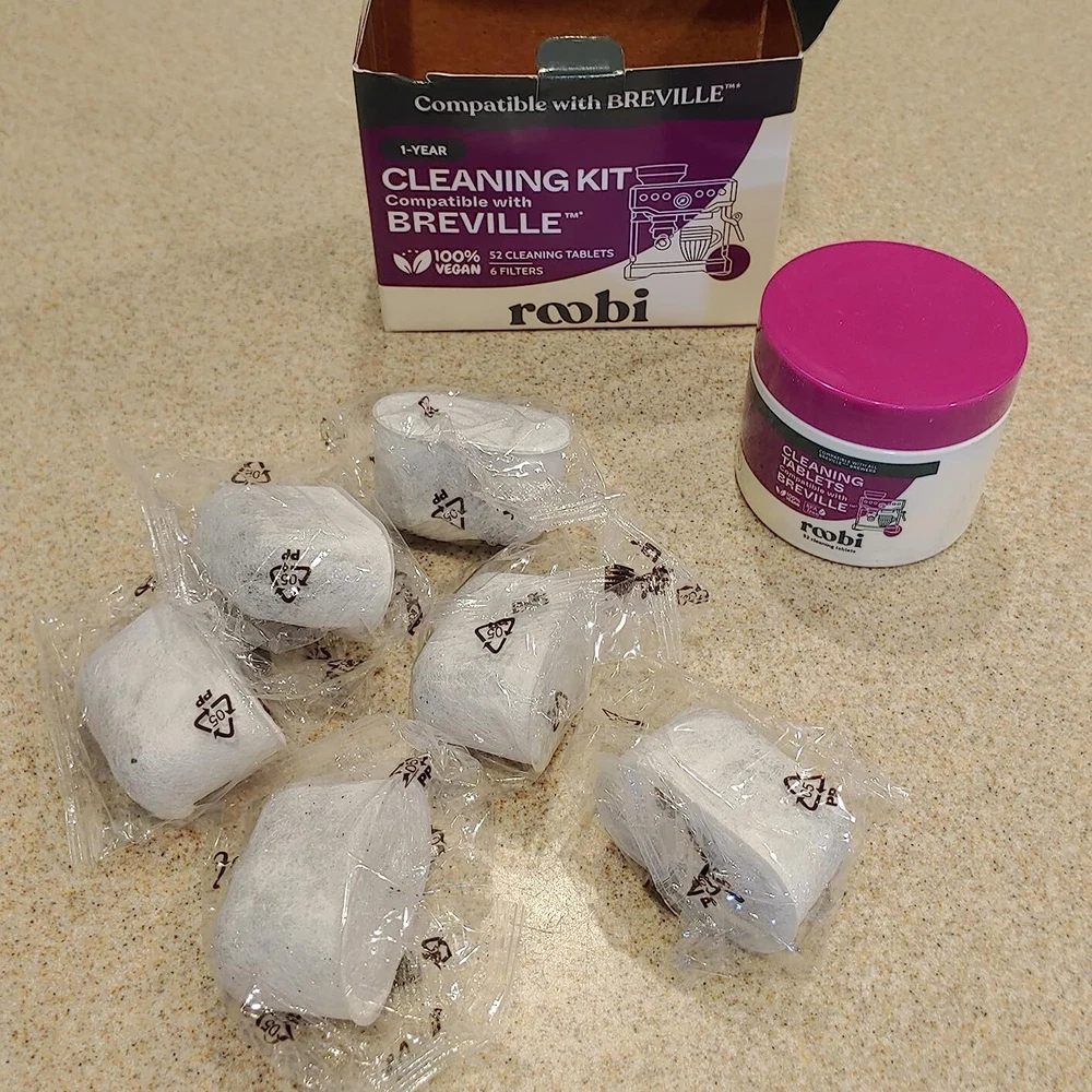 52 Cleaning Tablets and 6 Water Filters: This kit includes a year's supply of specially formulated, non-toxic cleaning tablets and water filters designed for Breville espresso machines. Effective and Odor-Free: The tablets effectively remove residues and impurities from your machine, while the filters reduce water impurities, improving the taste of your coffee without any unpleasant odors. Eco-Friendly and Safe: Both the cleaning tablets and water filters are environmentally safe and non-toxic, ensuring a safe cleaning experience for you and your machine.