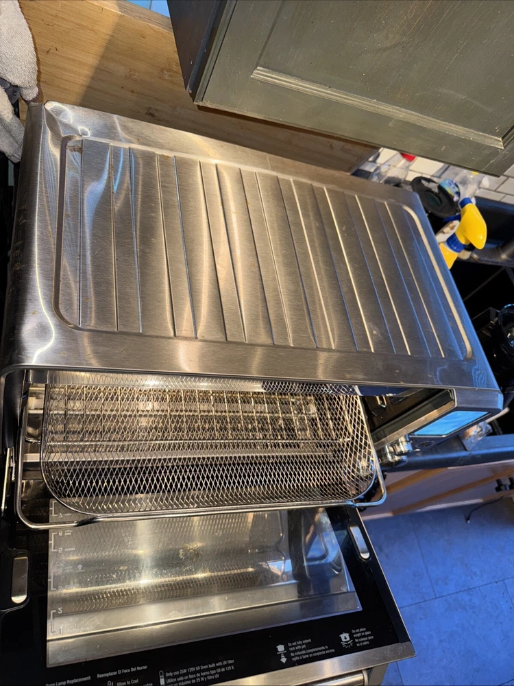 Introducing the Breville BOV900BSSUSC, a high-quality countertop oven perfect for baking delicious meals. This electric oven is made of durable aluminum and has a sleek brushed stainless steel finish. It measures 21.5 inches in length, 17.5 inches in width, and 12.7 inches in height, with a weight of 38.9 lbs. With a power of 1800 W and a voltage of 120 V, this oven is perfect for all your baking needs. It has a toaster oven design and can fit up to 28L of food. The appliance uses include baking, and it is a great addition to any kitchen. The color of the oven is silver, and it comes with a variety of features. Cosmetic defect and back left corner as seen in photo. If you put a cutting board over it, you can’t really tell this is what I’ve done. I’ve only owned it for like three weeks. The previous owner dropped it on its side. I do a lot of like a pallet finding and treasure hunting and this was like one of the pallet items that I found that I decided to use, but I have decided that it is way too big for my 100 square-foot kitchen. Works great other than the cosmetic defects.