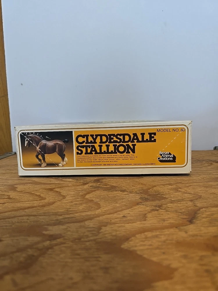 Breyer 1982 Clydesdale Stallion #80, Mare #83, and Foal #84. This stunning model horse collection is made of high-quality plastic and comes with its original boxes.