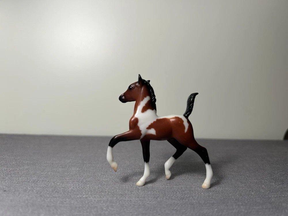 Retired Breyer Stablemate from Stablemates Horse Lover's Collection. Bay pinto on the trotting foal mold. Good condition.