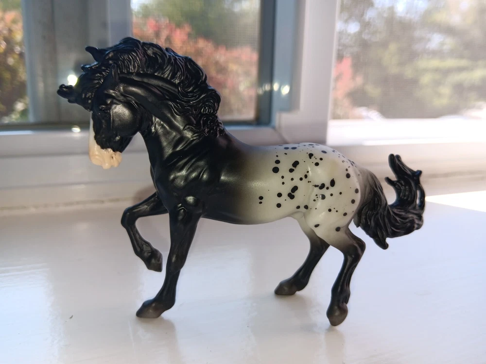 New mold!! Breyer 2024 TSC Limited Fireheart black Appy. Gorgeous boy!! Stablemate size. HTF!! Only removed for pics Average EBAY price: $39!!