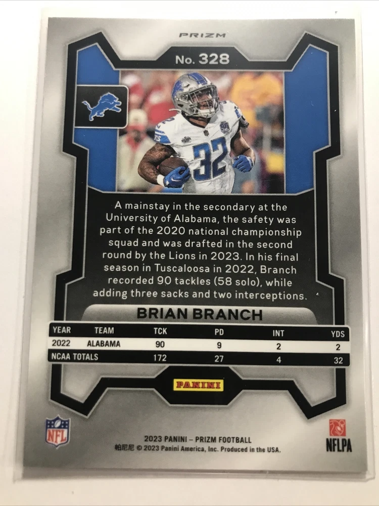 Brian Branch 2023 Panini Prizm #328 ROOKIE RC ORANGE LASER SP DETROIT LIONS . Condition is Ungraded. Shipped with USPS Ground Advantage.