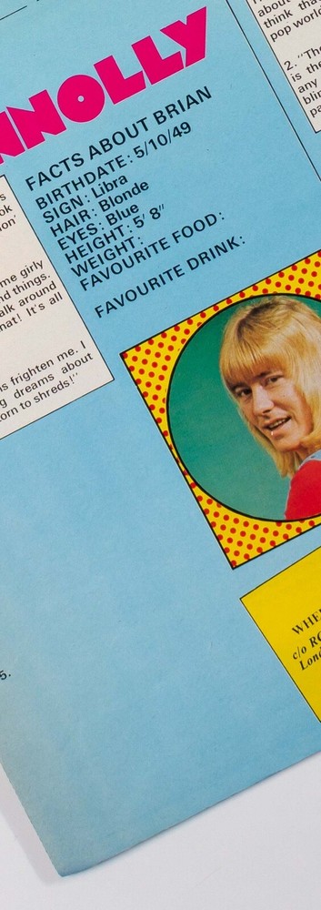Brian Connolly of The Sweet 2 features & a poster in a 70s pop music UK MAGAZINE