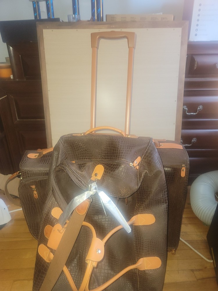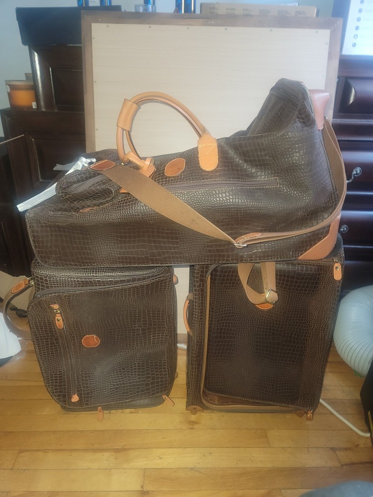 This exquisite luggage set from Bric's is perfect for any traveler who wants to look stylish and sophisticated. The brown croc leather design adds a touch of luxury to your travel experience, while the rolling wheels make it easy to move around the airport and terminals. With plenty of space for all your travel essentials, this luggage set is ideal for long trips and short getaways. The set includes 21 and 19in carry-on roller bags plus a 27in duffel bag roller, all made from high-quality leather that will stand the test of time. Whether you're a business traveler or a leisure traveler, this Bric's luggage set is a must-have for your collection.