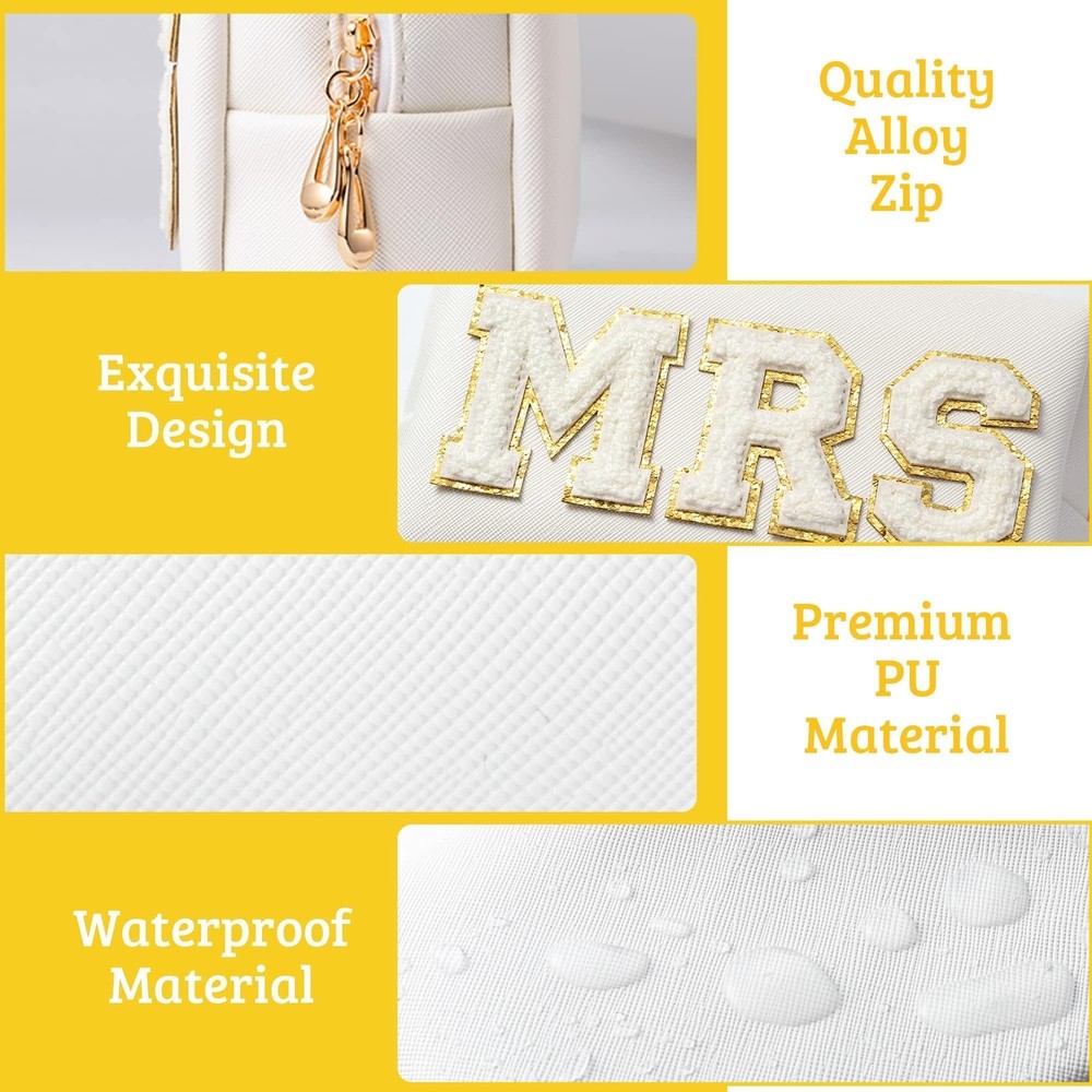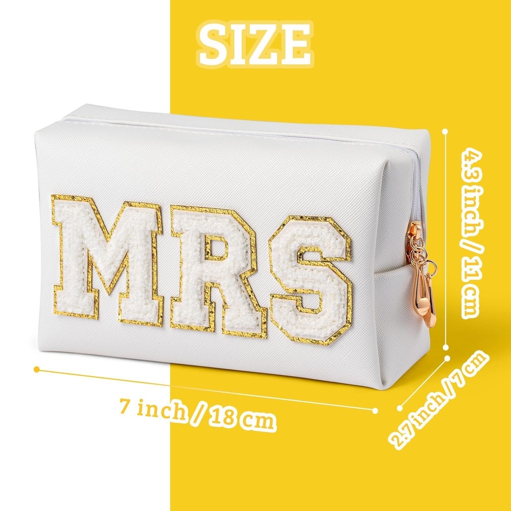 Belanttega Bride Patch MRS Cosmetic Bag PU Leather White Letter Portable Waterproof Purse Organizer Travel Toiletry Bag Engaged Makeup Bag Gift for Women Girls, Gold Portable Size: The size of the Cosmetic bag is approx 9.06inch x 4.96inch x 1.18inch, which is the perfect size to storage your commonly used makeups and accessories. And it is in the small size and suitable to be kept in your purse, suitcase, luggage, package and so on. Believe it will be the excellent travel companion! Premium Material : Surface premium waterproof PU leather, cute design, waterproof and durable. Double zipper made of high quality alloy, easy to close or open. Minimalist Design: The Cosmetic bag with white color and has a big white “MRS” letter with gold trim is stuck in the middle. The overall feel of our cosmetic bag is elegant and minimalist which is very easy for you to match various styles of Bag. Multifunctional: It has the advantages of small size and large capacity. It can store the cosmetics needed for daily use. The cosmetic bag can not only store cosmetics, but also be used to store toiletries, skin care products, electronic products, stationery, etc. Excellent Gift : This custom cosmetic bag is the perfect gift for wife, girlfriend, mom, sister, daughter, family, lover, teenage girls on Valentine's Day, Graduation, Prom, Birthday, Christmas and other holidays. SHIPPING Domestic Buyers - We have confidence in our products, but if you are not fully satisfied please contact us within 30 days of purchase and you will get full refund. - We ship within 3 business days of payment, usually sooner - We offer FREE shipping on all orders! - We only ship to the lower 48 states, no APO/FPO addresses or PO Boxes allowed International buyers – please note: Import duties, taxes, and charges aren't included in the item price or postage cost. These charges are the buyer's responsibility. - Please check with your country's customs office to determine what these additional costs will be prior to bidding or buying. * Order Cancellation Policy ** You can return a product for up to 30 days from the date you purchased it. 1. The seller reserves the right to cancel the special case only due to eBay cancellation fee. 2. The decision of seller is the final. 3. The seller will respond to the cancellation request within 2 business days. Please wait for the result of cancellation. 4. In case the cancellation is not completed by some reasons, the buyer can follow the options below to get the refund. 4.1 The buyer can reject the item when it arrives. 4.2 The buyer can send the item back to the seller within 30 days If the buyer receives item (USA Shipment ONLY). The seller will provide the FREE return label to the buyer when the buyer opens " Return Item" case on eBay by using the reason as "Change my mind" ONLY. 5. When buyer has placed the order. The order will be processed and completed by automatic warehouse system within 5 minutes. In case that buyer sends the cancellation request after 5 minutes of placing the order, the request will be rejected. **Sending direct message to cancel the order is not allowed for every case.* Return Policy For the return case - If buyer would like to return the items for refund or replacement, please CONTACT SELLER to receive the free return label from seller. The refund or replacement will be processed with the tracking number of return label which is provided by seller only. The other ways of return which are not approved by seller will not be processed for the refund or replacement.