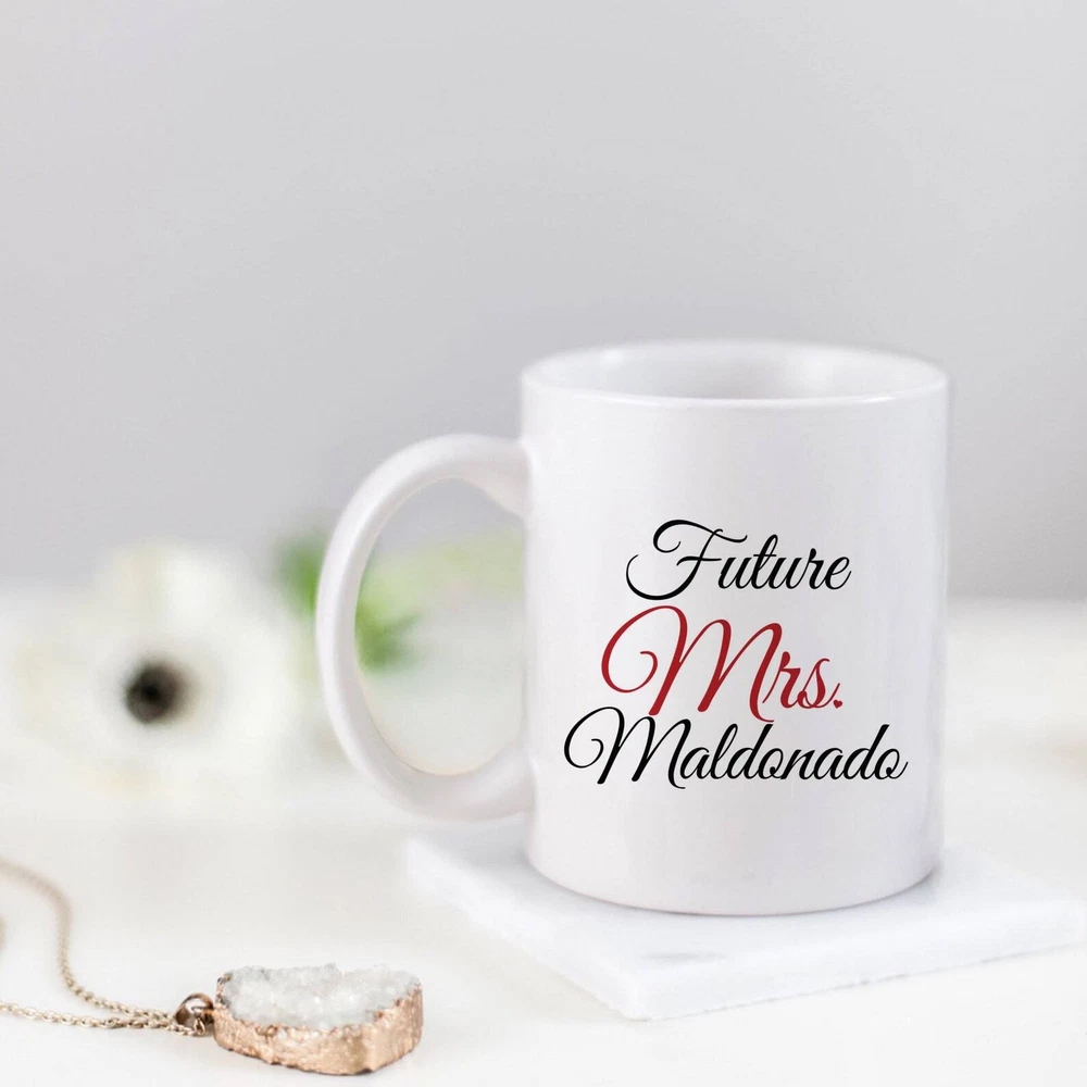 Bride To Be Mug Future Mrs Mug Personalized From Bridesmaids Gift For Her Newly Product Details.. This high quality 11oz. ceramic white mug has a premium hard coat that provides crisp and vibrant color reproduction sure to last for years. Perfect for all hot & cold beverages. The highest quality printing possible is used. It will never fade no matter how many times you wash it. Material: 100% Ceramic. Print both sides. Dishwasher and Microwave Safe. High Gloss + Premium White Finish. Printed in the U.S.A. Personalized & Custom. We support personalized and custom mug to add custom, when placing an order, you can add notes to the "order note" in shipping address section. Also you can contact us directly via message. Shipping Info. Ready to ship in 1 to 2 business days, All products are made-to-order and proudly printed in the United States. Shipped by USPS and DHL, You will receive your order in 5-7 days. Replace & Refund. All products are defective during shipping broken, chipped will be replaced free of charge. You are not satisfied with the product, we will refund 100% money to you. If any other issues arise, please do not hesitate to message, we would be more than happy to assist you.