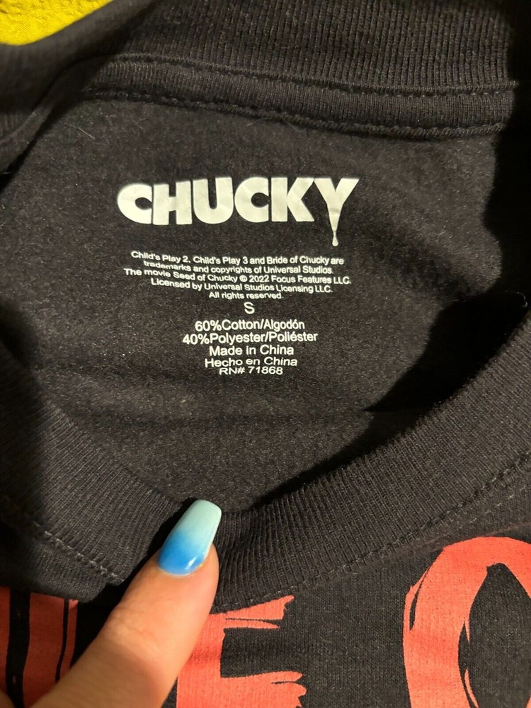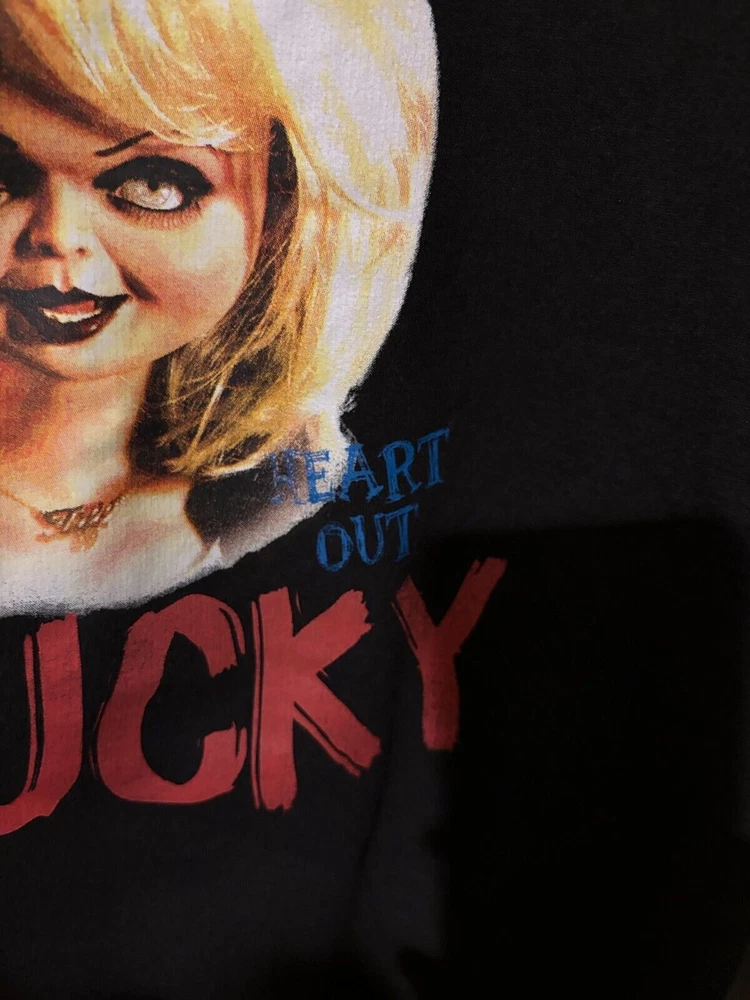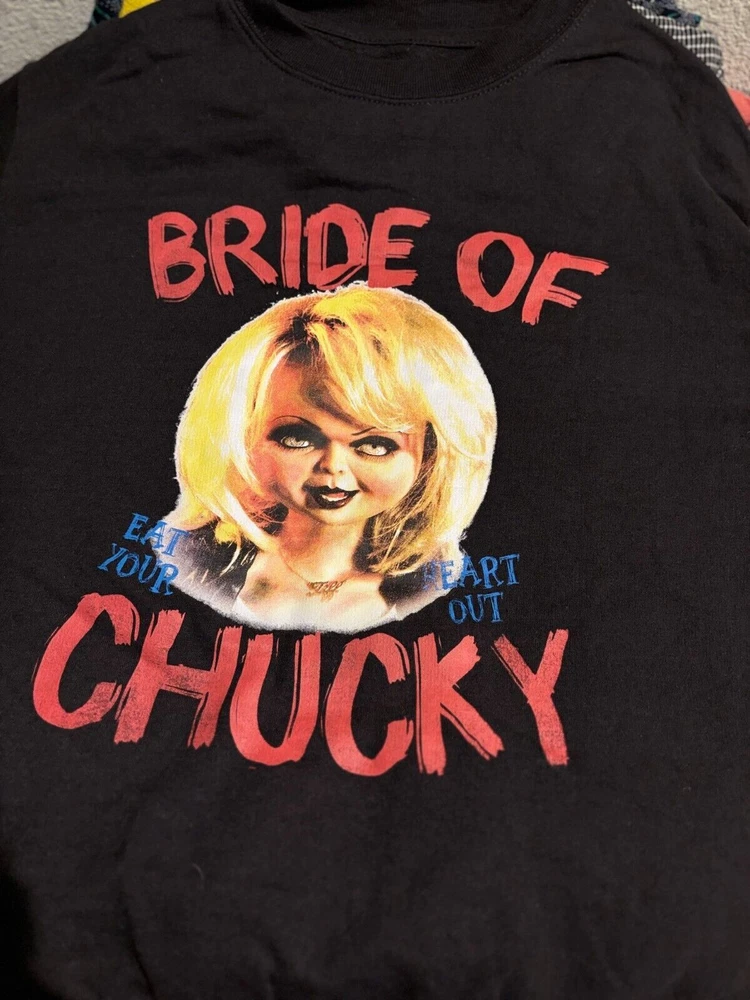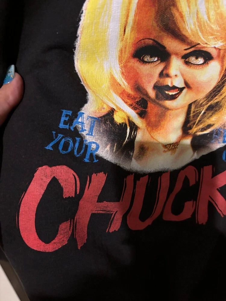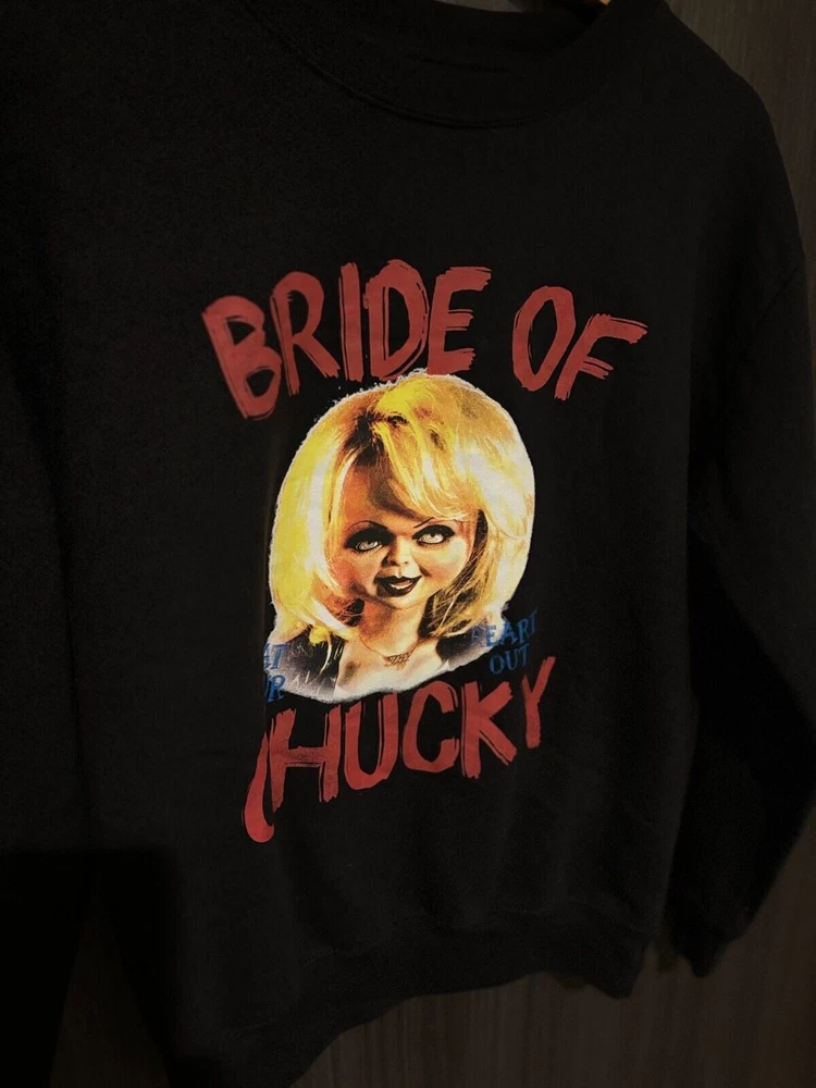 Bride of Chucky Sweatshirt Women's Small Black Graphic Print Cotton Long Sleeve Description Bride of Chucky Sweatshirt Women's Small Black Graphic Print Cotton Long Sleeve . Product Detail • Brand: Chucky • Department: Women 's • Color : Black • Type: Sweatshirt Please message me if you have any questions. Please check photos above for measurements. Listing and template services provided by inkFrog