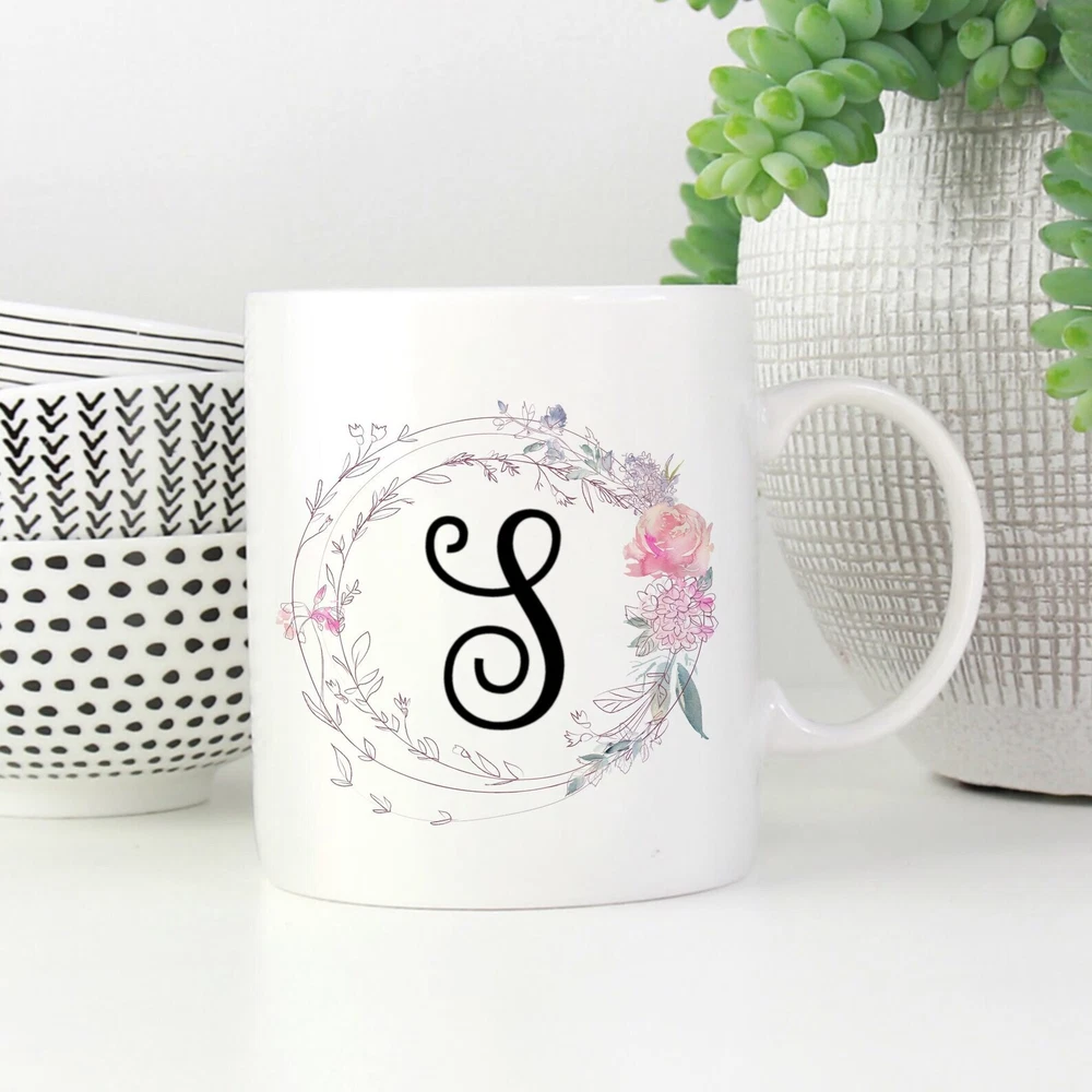Bridesmaid Gift Engagement Gift Monogrammed Soft Floral Mug Personalized Initial Product Details.. This high quality 11oz. ceramic white mug has a premium hard coat that provides crisp and vibrant color reproduction sure to last for years. Perfect for all hot & cold beverages. The highest quality printing possible is used. It will never fade no matter how many times you wash it. Material: 100% Ceramic. Print both sides. Dishwasher and Microwave Safe. High Gloss + Premium White Finish. Printed in the U.S.A. Personalized & Custom. We support personalized and custom mug to add custom, when placing an order, you can add notes to the "order note" in shipping address section. Also you can contact us directly via message. Shipping Info. Ready to ship in 1 to 2 business days, All products are made-to-order and proudly printed in the United States. Shipped by USPS and DHL, You will receive your order in 5-7 days. Replace & Refund. All products are defective during shipping broken, chipped will be replaced free of charge. You are not satisfied with the product, we will refund 100% money to you. If any other issues arise, please do not hesitate to message, we would be more than happy to assist you.