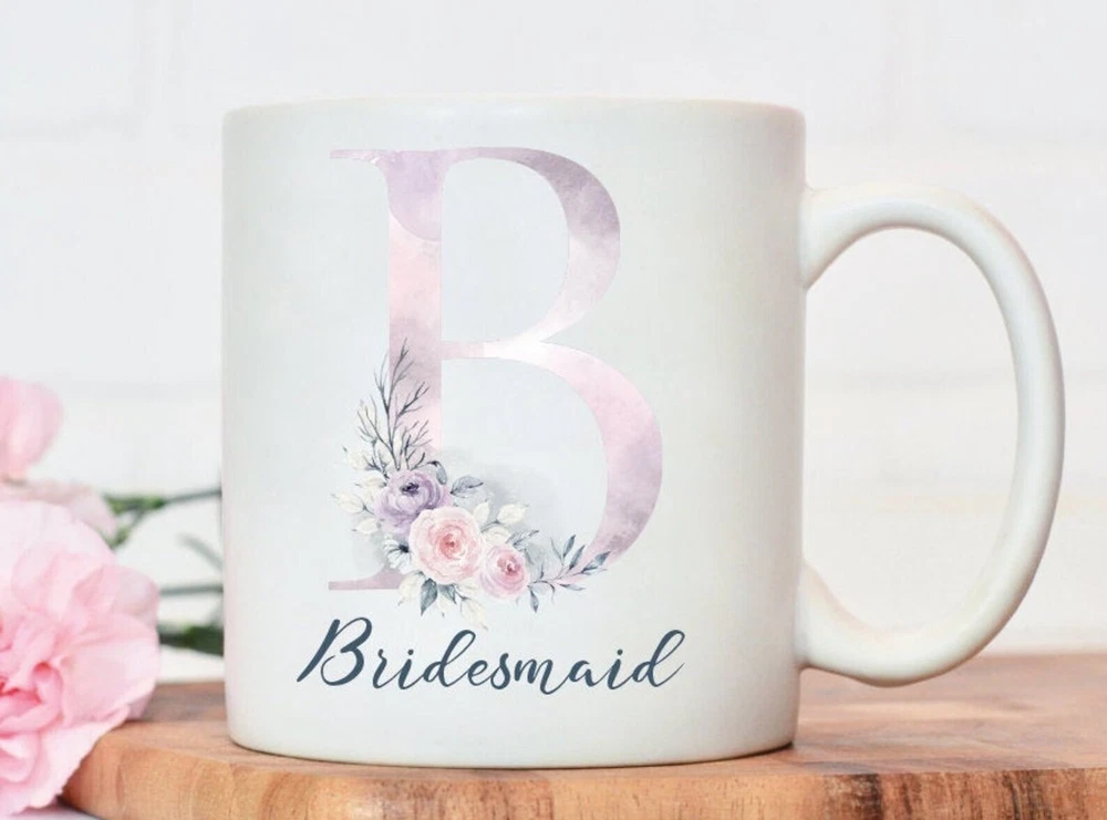 Bridesmaid Mug B Is For Bridesmaid Mug Floral Bridesmaid Mug Initial Mug Will Product Details.. This high quality 11oz. ceramic white mug has a premium hard coat that provides crisp and vibrant color reproduction sure to last for years. Perfect for all hot & cold beverages. The highest quality printing possible is used. It will never fade no matter how many times you wash it. Material: 100% Ceramic. Print both sides. Dishwasher and Microwave Safe. High Gloss + Premium White Finish. Printed in the U.S.A. Personalized & Custom. We support personalized and custom mug to add custom, when placing an order, you can add notes to the "order note" in shipping address section. Also you can contact us directly via message. Shipping Info. Ready to ship in 1 to 2 business days, All products are made-to-order and proudly printed in the United States. Shipped by USPS and DHL, You will receive your order in 5-7 days. Replace & Refund. All products are defective during shipping broken, chipped will be replaced free of charge. You are not satisfied with the product, we will refund 100% money to you. If any other issues arise, please do not hesitate to message, we would be more than happy to assist you.